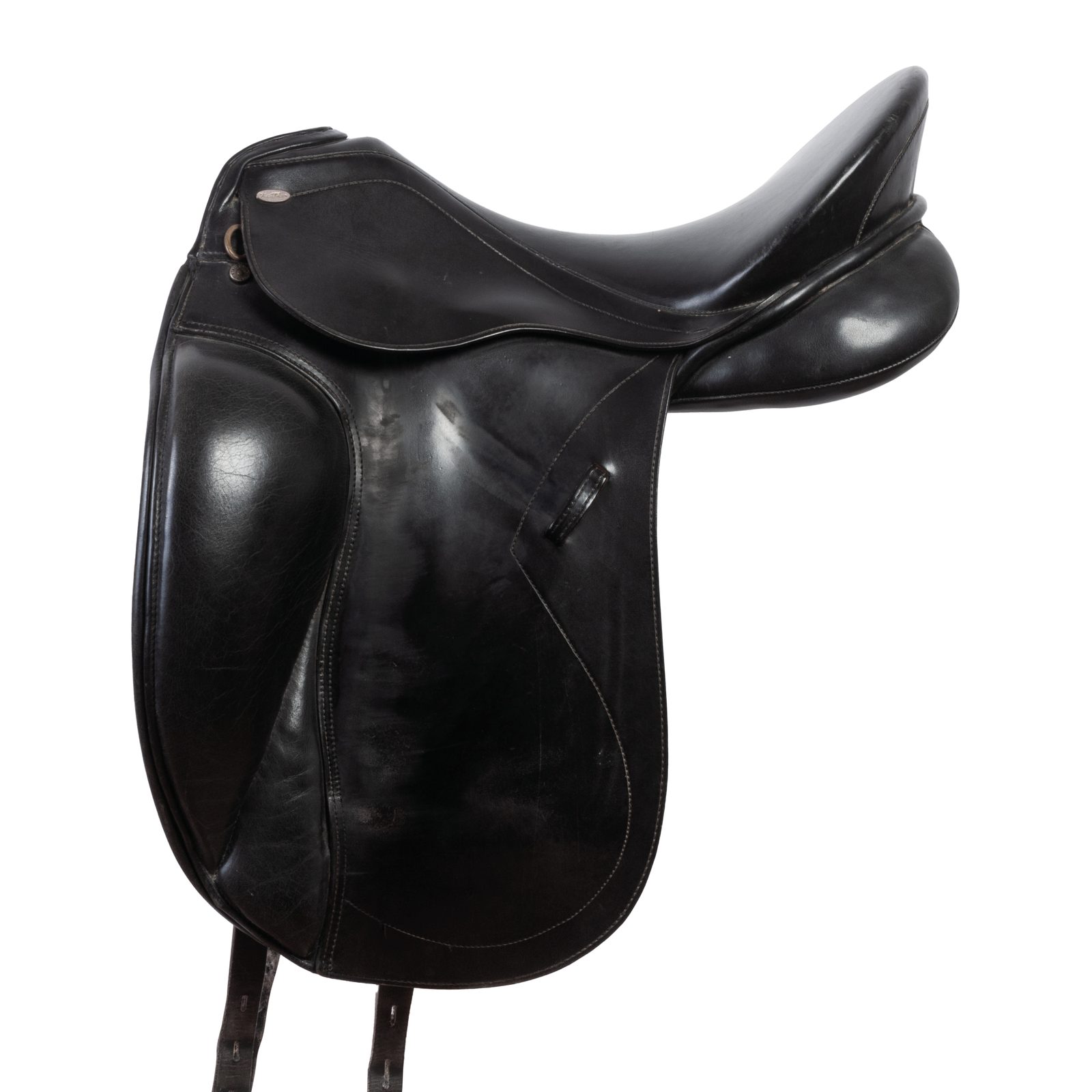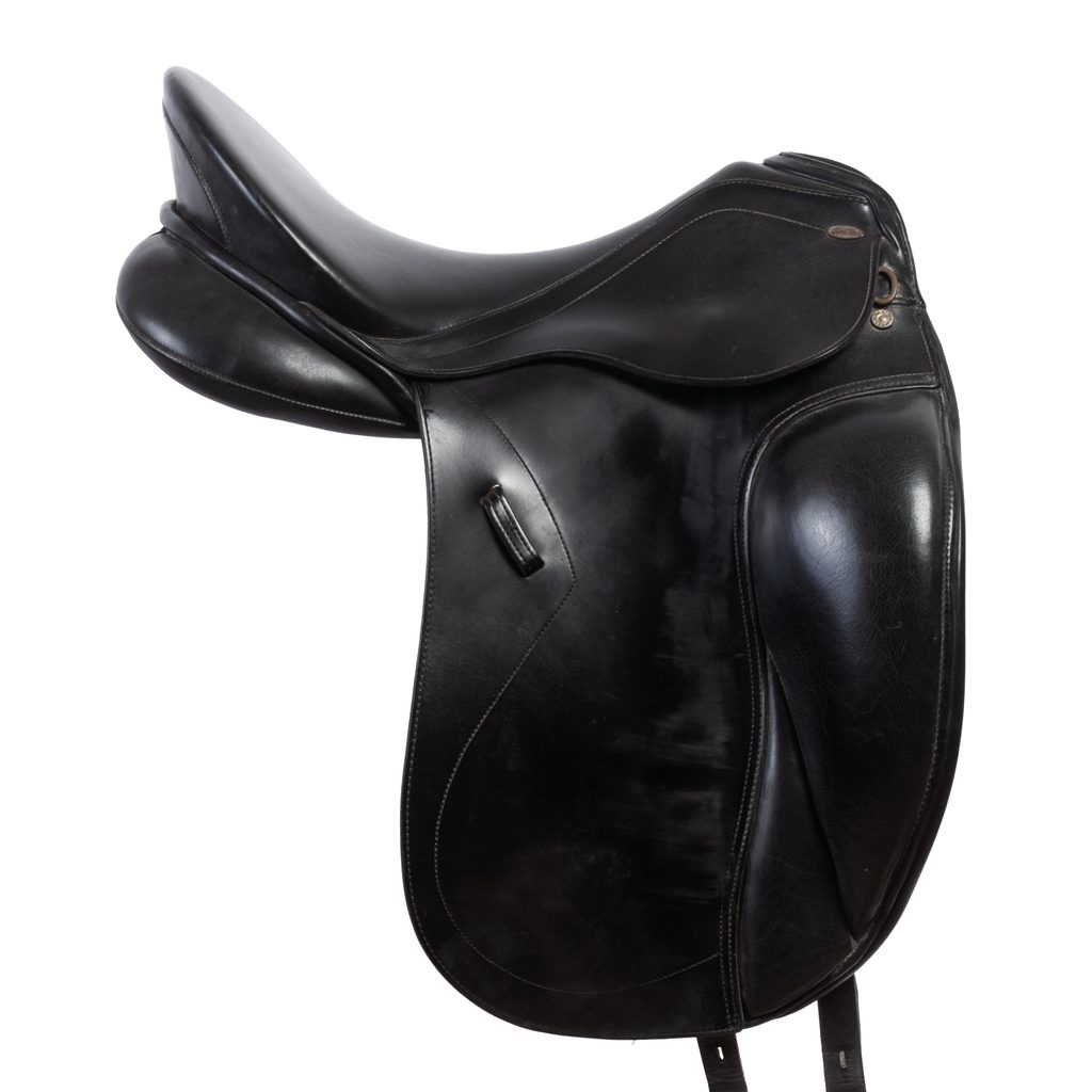 Drezurní sedlo na hluboké kostře s dozadu vykrojenou komorou. Velké opěrky a anatomicky tvarovaná bočnice výborně fixují nohu jezdce. Široký vlněný polštář nabízí dobrou možnost pro individuální napasování sedla na koně.