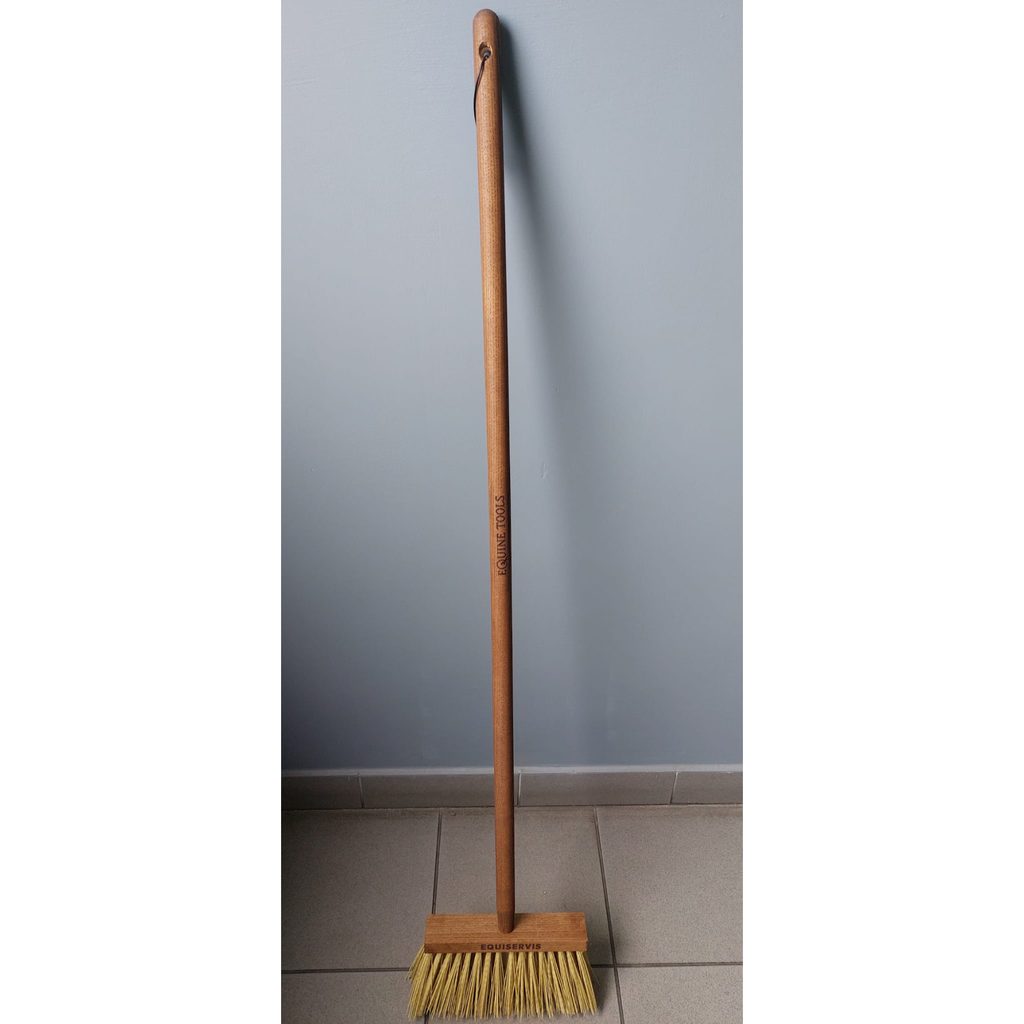 Koště zatloukané. Jasanová násada, délka 100cm s dírou na pověšení. Násada je povrchově ošetřena transparentním lakem/ tmavým olejovoskem.