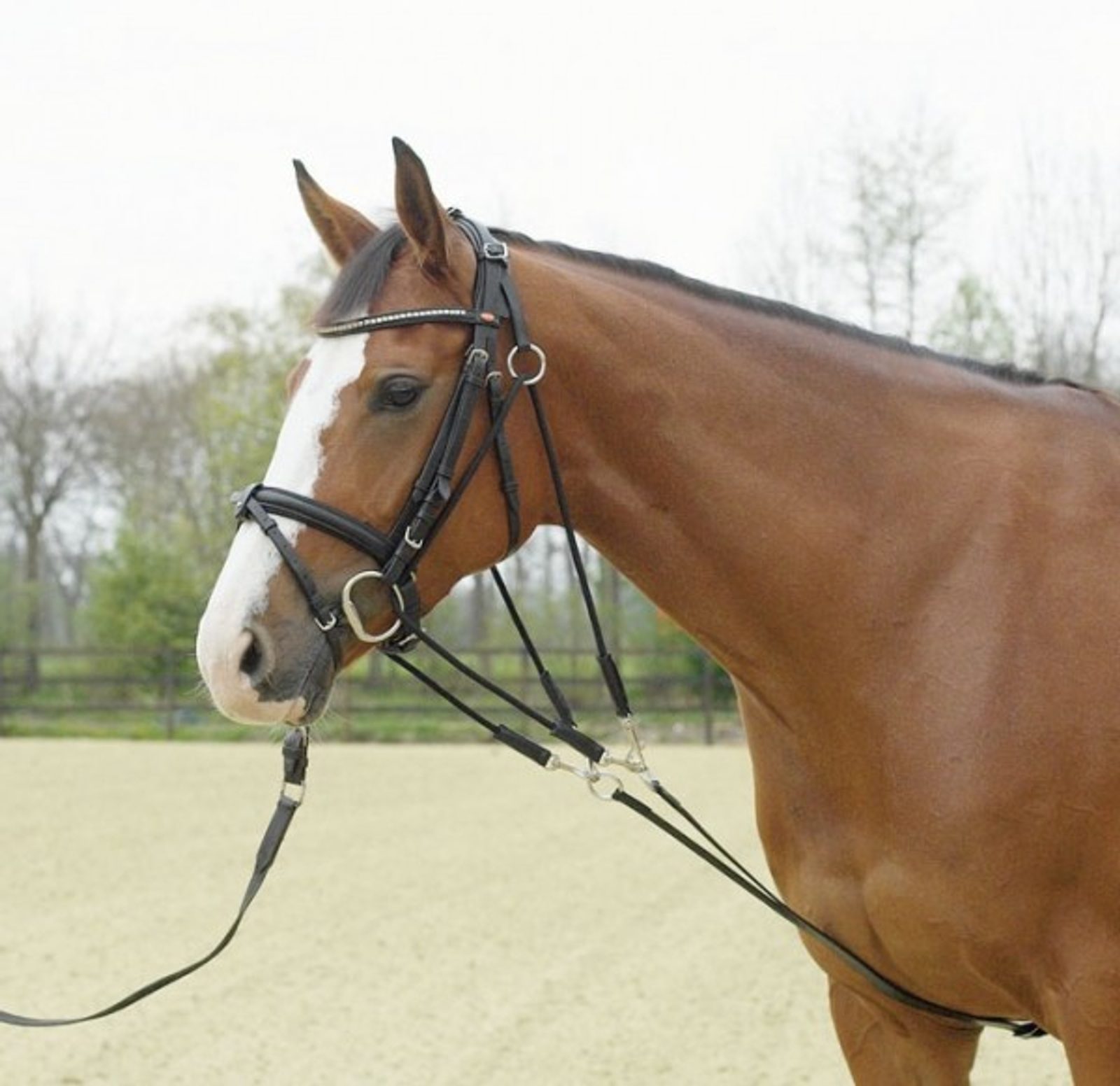 Pevná pomůcka výrazně sestavující krk koně. Lze použít k lonžování i pro práci pod sedlem. Economy kvalita. Barva: černá. Velikost: full.