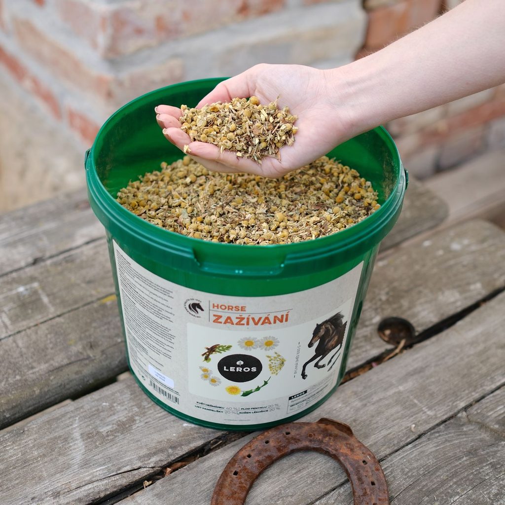 Příprava: 30 g směsi (3 odměrky) rozmíchejte v krmivu nebo připravte vodný výluh ze stejného množství pro zalití krmiva.