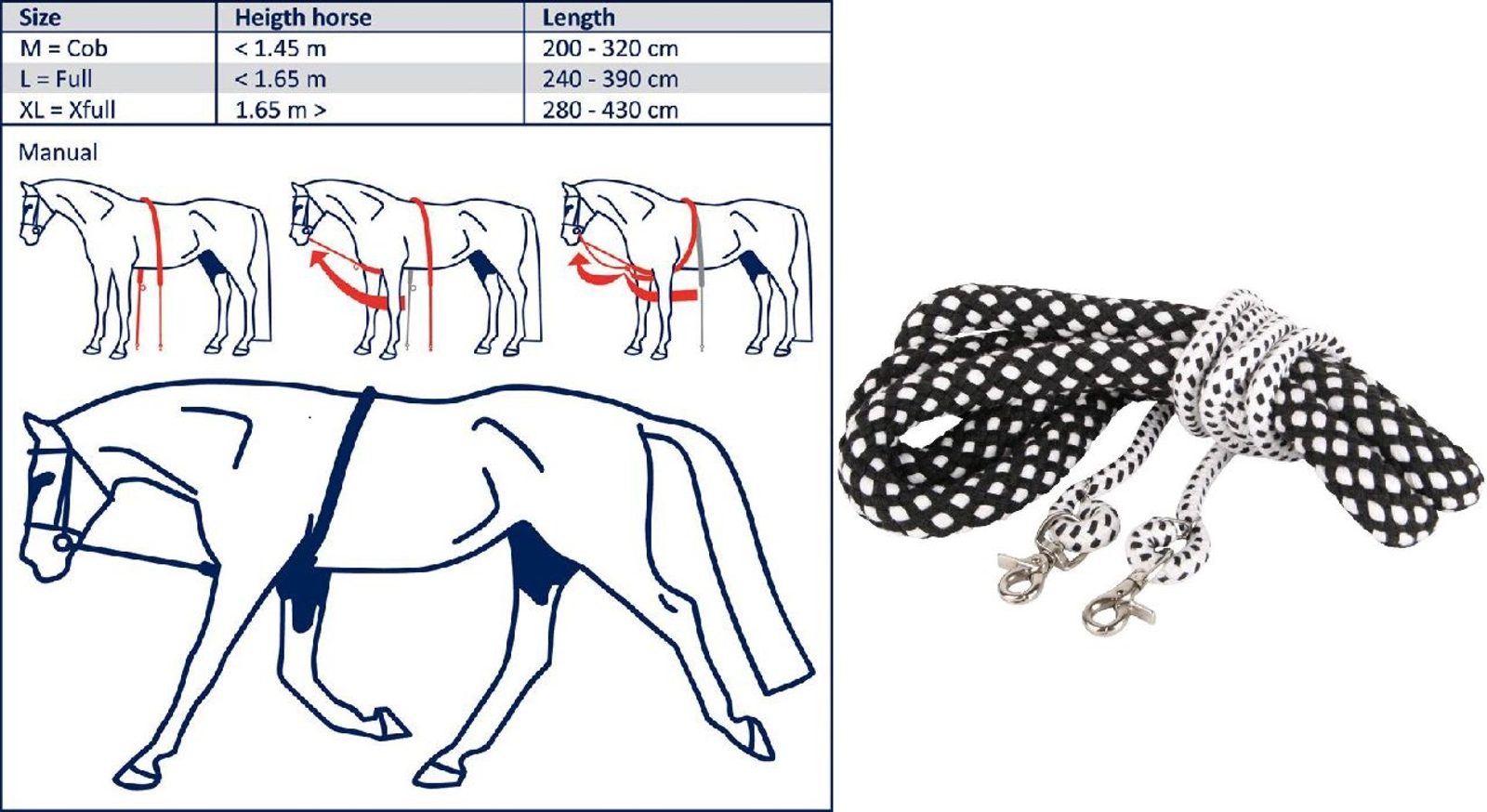Velmi srozumitelná pomůcka při práci na lonži, pomáhá k uvolnění hřbetu koně a k lepšímu nasvalení. Velikost: M, L, XL. Barva: černá/bílá.