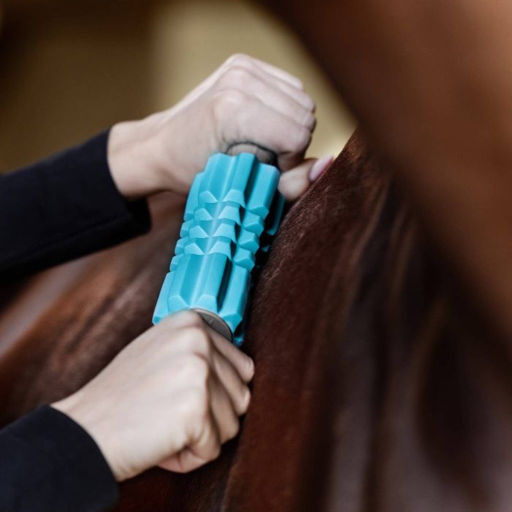 Díky své struktuře a tvaru umožňuje efektivní práci i na hlubších svalových vrstvách. Je ideální pro použití před tréninkem jako zahřátí i po práci pro uvolnění zatuhlých míst. Díky ergonomické rukojeti je manipulace snadná a pohodlná – bez potřeby elektrické energie, nebo náročného zacházení. Pomáhá nejen fyzicky, ale také s psychikou – masáž působí uklidňujícím dojmem a může být skvělým rituálem pro prohloubení vztahu mezi jezdcem a koněm. Vhodné používat 1x-2x týdně.