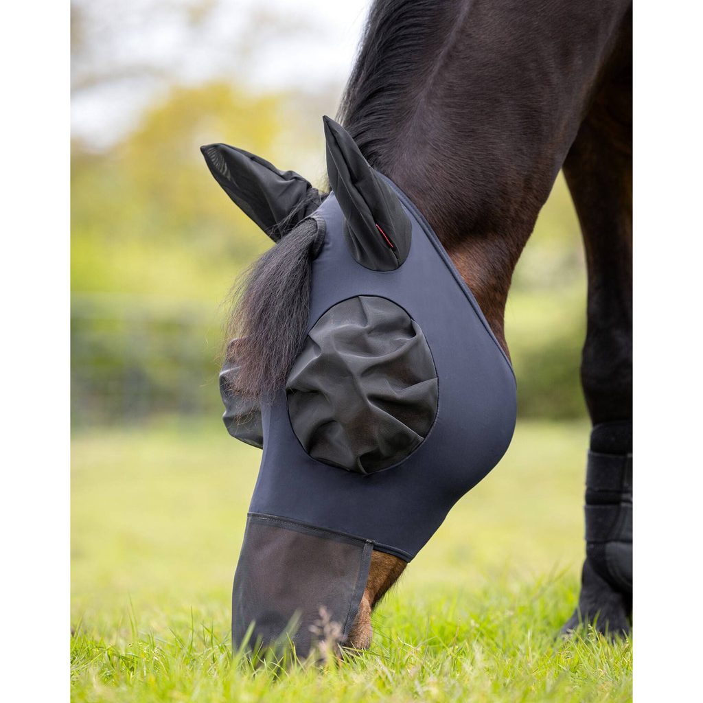 Je tvarovaná, aby perfektně a pohodlně sedla. Její přiléhavý střih a elastická tkanina zabraňuje hmyzu vniknout pod masku. Tkanina na uších je síťovaná pro maximální prodyšnost. Kolem očí je ochranná síťovina, která nepřiléhá a zlepšuje koni viditelnost. Prodloužená část u nosu chrání citlivé koně proti spálení. Má otvor na provlečení čupřiny. Navléká se přetažením, je tedy bez zipu či suchého zipu.