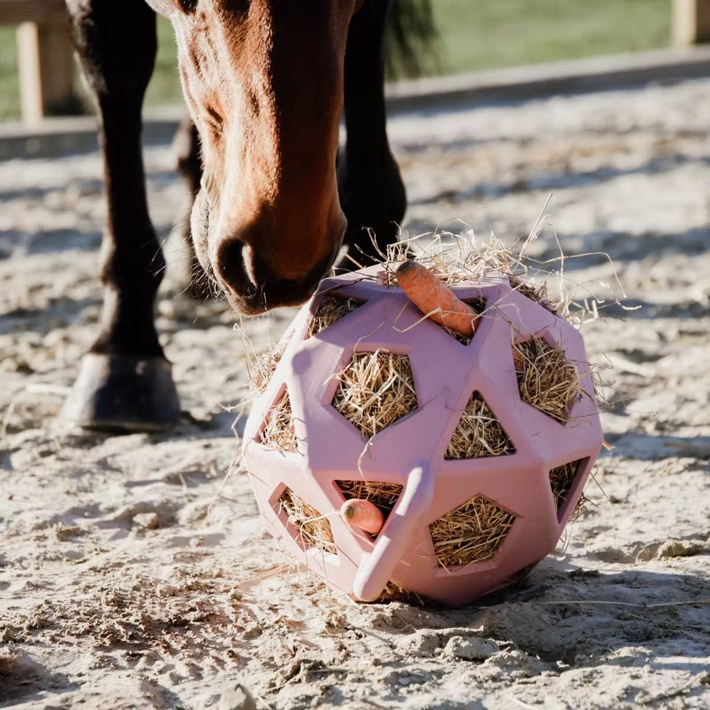Míč Kentucky Horsewear Relax Horse Play & Hay Ball je ideální způsob, jak zabránit nudě a stimulovat mysl vašeho koně. Slouží zároveň jako slow feeder, díky čemuž pomáhá regulovat příjem sena a zpomaluje krmení, a to jak ve stáji, tak na paddocku či během transportu.