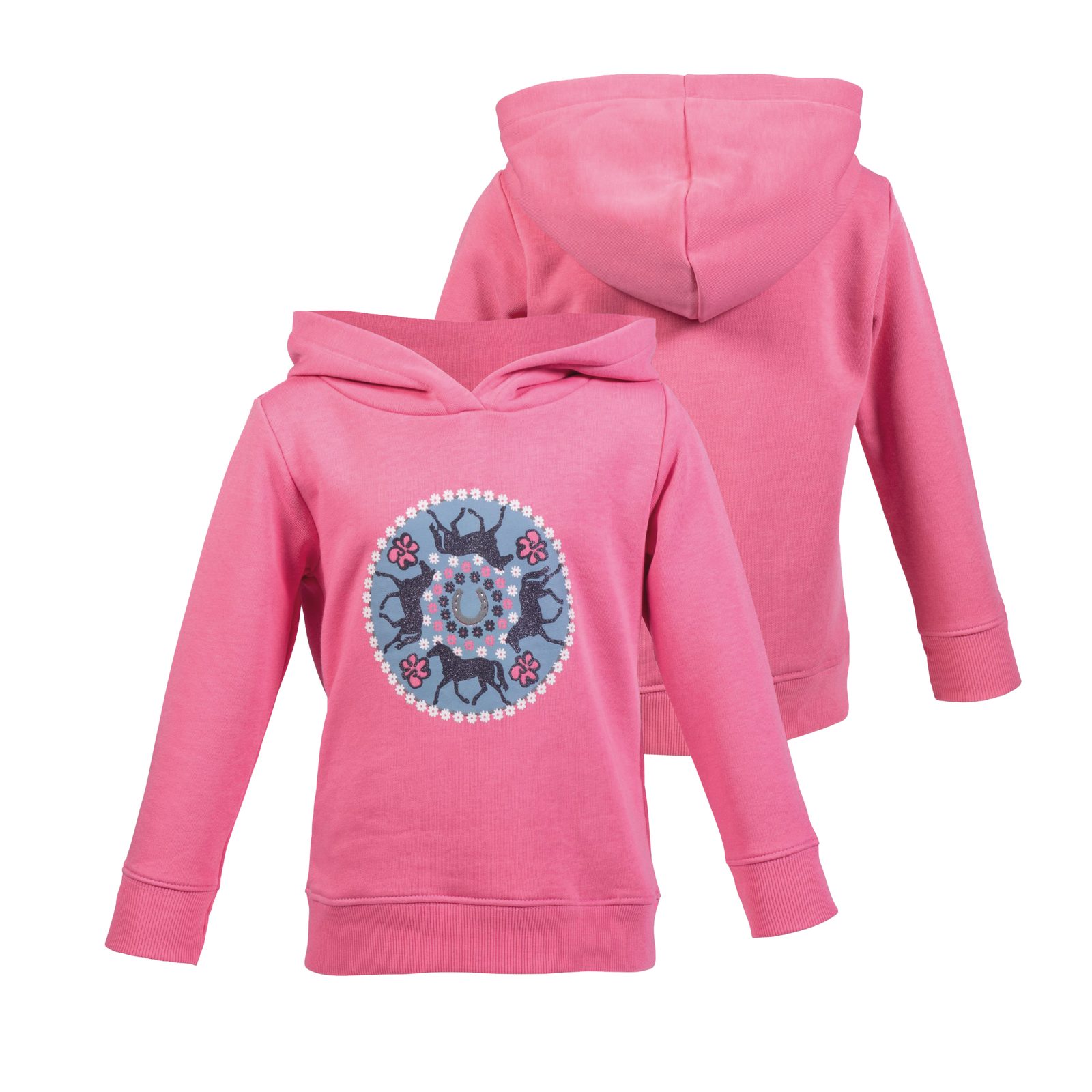Dětská zateplená mikina s kapucí, s roztomilým potiskem na hrudi pro malé milovnice koní.