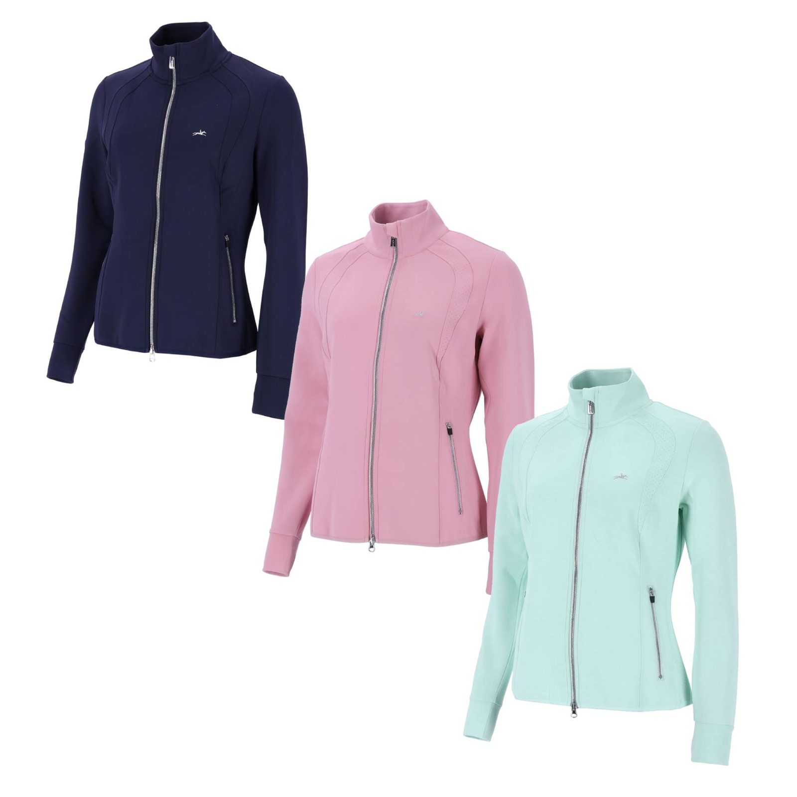 Díky tvarujícím švům se mikina krásně přizpůsobí postavě a podpoří ženskou siluetu, zatímco stojáčkový límec dodává moderní, atletický vzhled. Perforované vsadky na přední straně, zadní části a po stranách podporují vynikající prodyšnost, čímž zajišťují maximální pohodlí při nošení. Mikina je vybavena dvoucestným zipem a dvěma kapsami na zip, které nabízejí nejen funkčnost, ale i praktičnost. Elastický lem na spodním okraji a na manžetách rukávů zajišťuje pohodlné nošení a dokonalý střih. Výrazným detailem je design loga se zirkony na zadní straně, který přidává eleganci, doplněný o vyšívané logo koně na hrudi a logovou nášivku na levém rukávu, což dokonale dotváří sportovní, a přitom elegantní vzhled. Jedinečné barvy, které uchvátí na první pohled.
