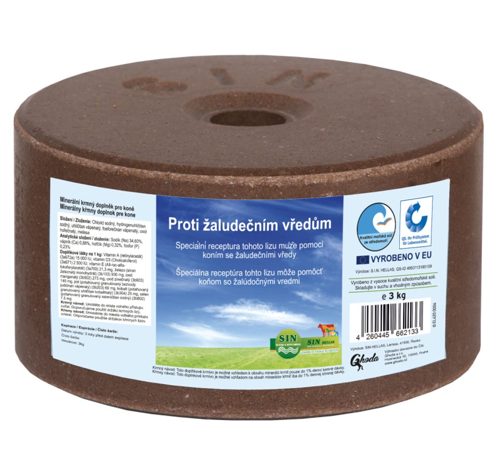 Speciální receptura tohoto minerálního lizu s hydrogenuhličitanem sodným pomáhá neutralizovat žaludeční kyselinu a může tak pomoci koním se sklony ke vzniku žaludečních vředů.