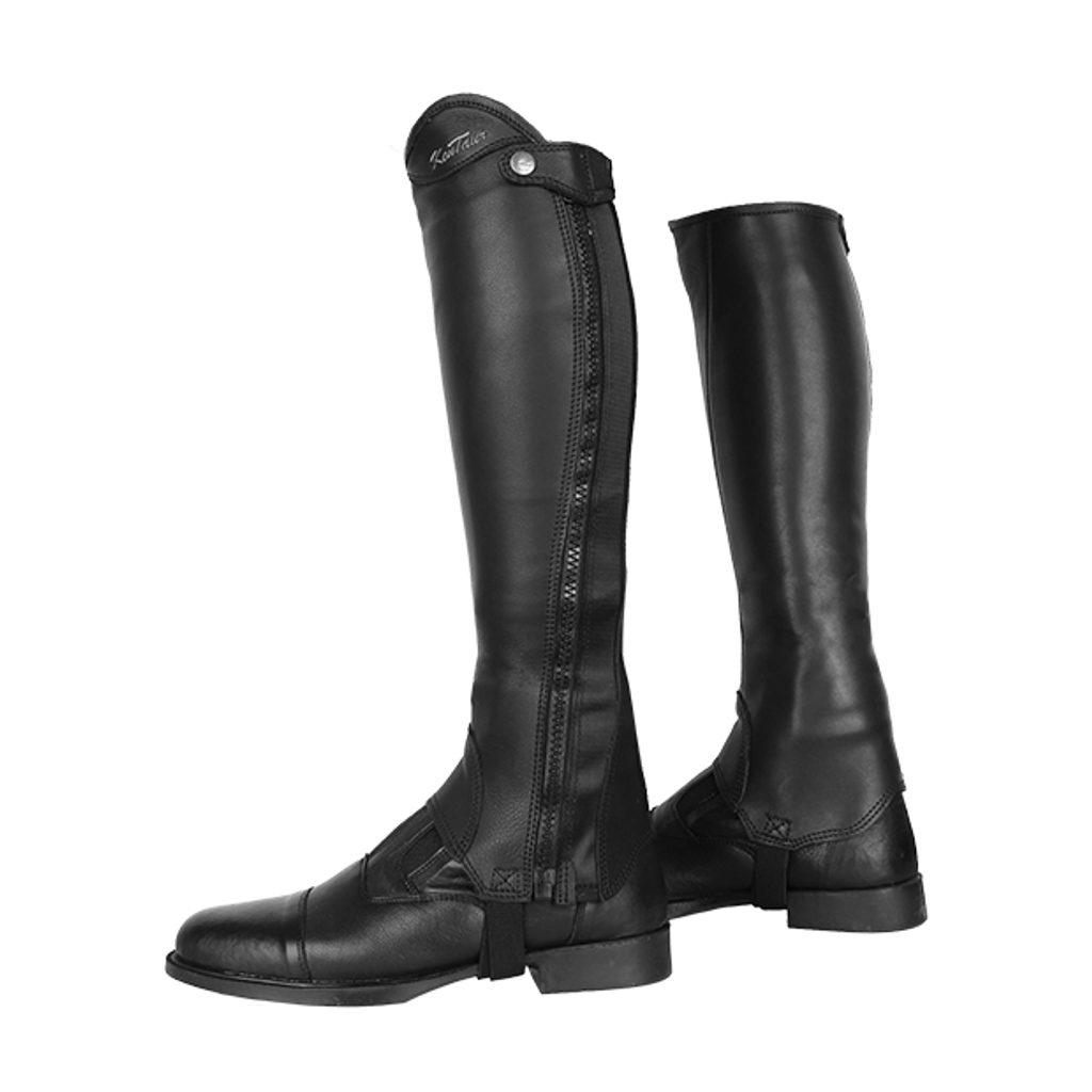 Nový model minichapsů od oblíbeného tuzemského výrobce. Elegantní minichaps jsou vyrobeny ze dvou typů kůže - vnější strana je extra měkká a dokonale přizpůsobivá, vnitřní strana je výrazně pevnější a silnější pro lepší trvanlivost ale bezomezení kontaktu s koněm. V kombinaci s vhodnými pérky opticky imituje vysoké jezdecké boty. Povoleno pro parkurové skákání na závody. Zip po celé délce, který se zapíná odspoda, podél zipu pruh gumy pro pohodlnější zapínání a lepší přizpůsobení noze. Barvy: černá a hnědá, mnoho kombinací šířka+výška.