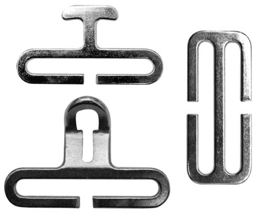 Dvě sady náhradních T přezek na deku. V každé sadě je horní přezka, spodní přezka a přezka k úpravě délky popruhu.