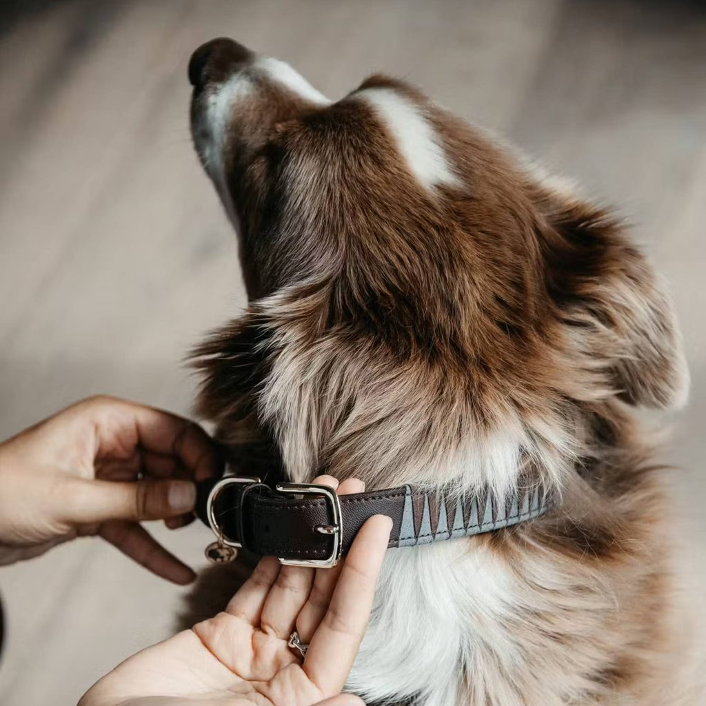Elegantní doplněk pro každého psa. Obojek Triangle spojuje pevnost umělé kůže s jemností sametového mikrovlákna pro luxusní vzhled i pohodlí.