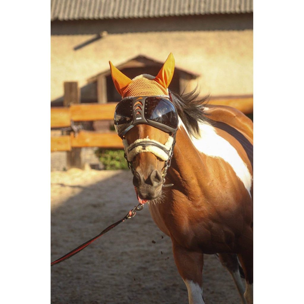 Tato ochrana je navržena tak, aby vašemu koni poskytla maximální pohodlí a bezkonkurenční ochranu během jízdy. Neocenitelná pomoc, pokud je nutné oči chránit před vnějšími vlivy- například po očních operacích, při úrazech očí, při uveitidách, kataraktách, přecitlivělosti na světlo, glaukomech, poškrábání oka a headshakingu. Navíc chrání před zraněními způsobenými prachem, nečistotami, větvemi a větrem, což z nich činí nepostradatelný doplněk pro každého koně. Jejich předností je ochrana proti UV záření.
