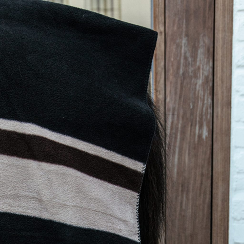 Díky těžkému fleecovému materiálu je rychleschnoucí a odvádí vlhkost na povrch, kde se pak rychle odpařuje. I v zimě váš kůň uschne do 5 minut a tak nenastydne. Polyesterová tkanina má vlněný vzhled, ale narozdíl od vlny lze z povrchu lehce odstranit hobliny. Kromě toho je odolnější a uživatelsky přívětivější, protože je pratelná a zároveň zůstává kvalitní.