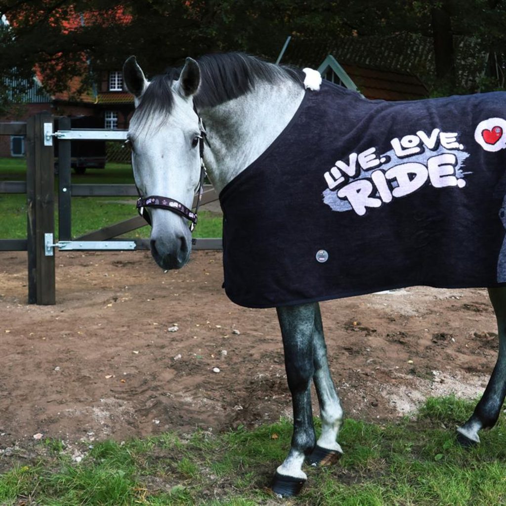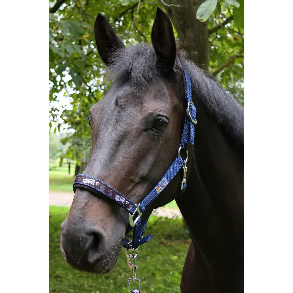 Na každou kolekci se vždy těšíme a ani tato není výjimkou! Nylonová ohlávka má měkké podložení nánosníku a nátylníku pro potřebný komfort koně, ke kterému také přispívá možnost individuálního přizpůsobení velikosti. Nánosník zdobí stužka s motivy Pummel - Live Love Ride.