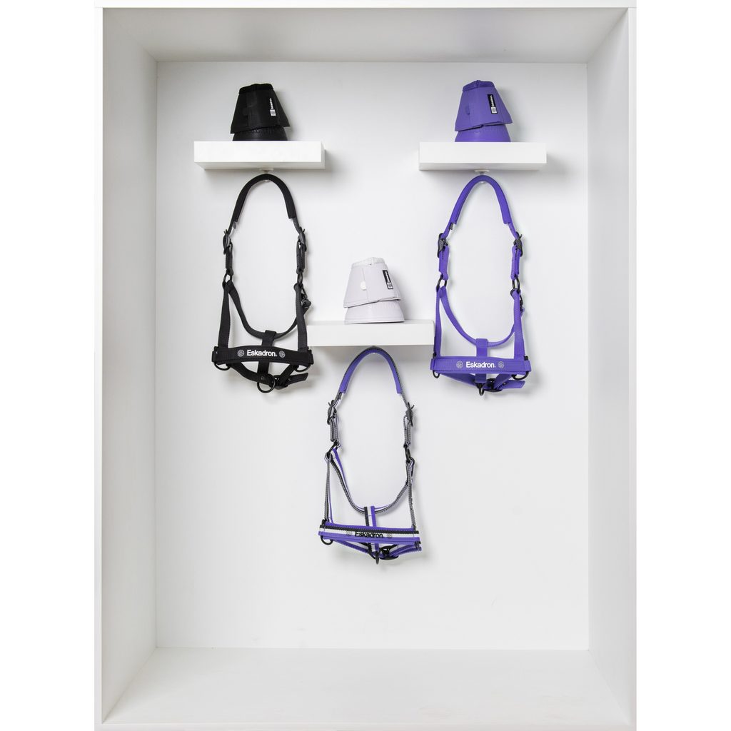 Ohlávky Eskadron jsou oblíbené zejména pro svou pevnost a odolnost proti roztržení. Příjemné materiály a měkké podložení zaručují komfort pro vašeho koně během celého nošení. Kvalitní materiály a precizní zpracování zajišťují dlouhou životnost ohlávky i při častém používání. Velikost lze uzpůsobit přesně podle potřeb vašeho koně. Ohlávku doplňuje elegantní kování v tmavé barvě.