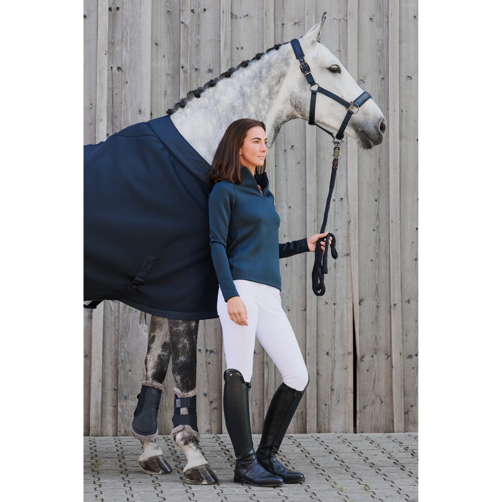 Ohlávky Eskadron jsou oblíbené zejména pro svou pevnost a odolnost proti roztržení. Příjemné materiály a měkké podložení zaručují komfort pro vašeho koně během celého nošení. Kvalitní materiály a precizní zpracování zajišťují dlouhou životnost ohlávky i při častém používání. Velikost lze uzpůsobit přesně podle potřeb vašeho koně. Ohlávku doplňuje elegantní kování.