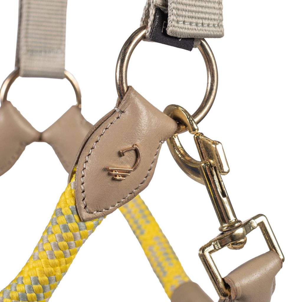 Ohlávka HKM Limone zaujme moderním designem v kombinaci s praktickými detaily pro každodenní použití. Elegantní matné zlaté kování dodává ohlávce luxusní vzhled.