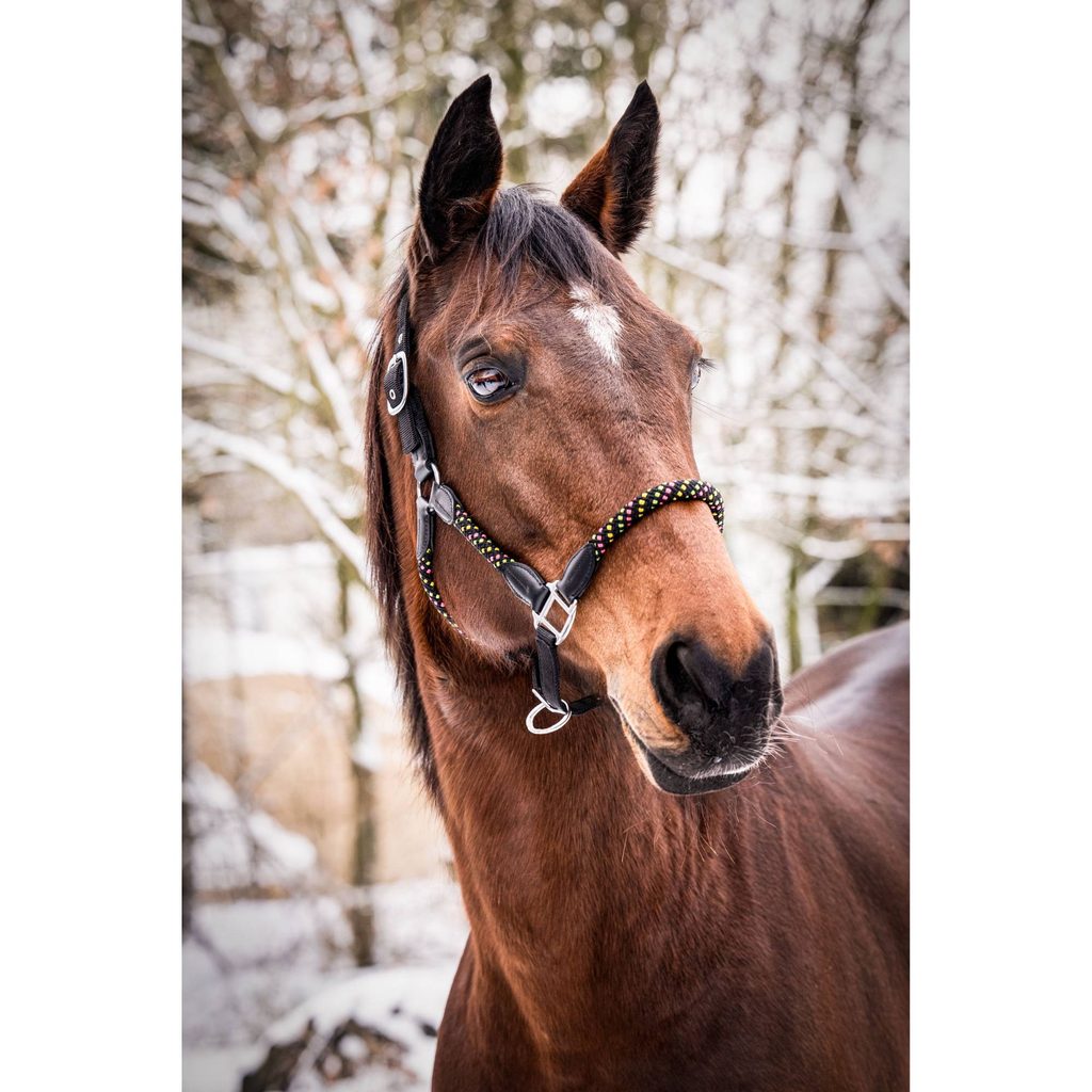 Měkké polstrování v oblasti nátylníku zajišťuje pohodlí a pomáhá předcházet otlakům. Díky oboustrannému nastavení nátylníku ji lze přesně přizpůsobit tvaru hlavy koně. Nastavitelný nánosník umožňuje ještě lepší doladění velikosti a optimální usazení. Provazový nánosník usnadňuje manipulaci a ovládaní koně. Je vhodná pro neklidné, lekavé, dopředné koně, nebo pro jakéhokoliv koně v případě potřeby větší kontroly.