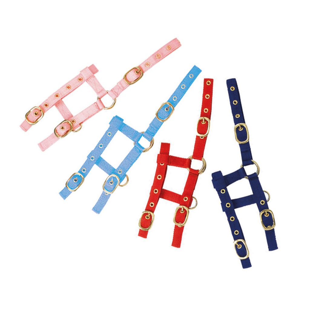 Mini ohlávka vyrobená z dvojitého polypropylenu s přezkou na nánosníku, nátylníku a podhrdelníku. Díly jsou spojeny očkem a přezky v barvě zlaté. Barvy: černá, sv.modrá, hnědá, růžová a královská modrá. Velikost: mini hříbě (pony).