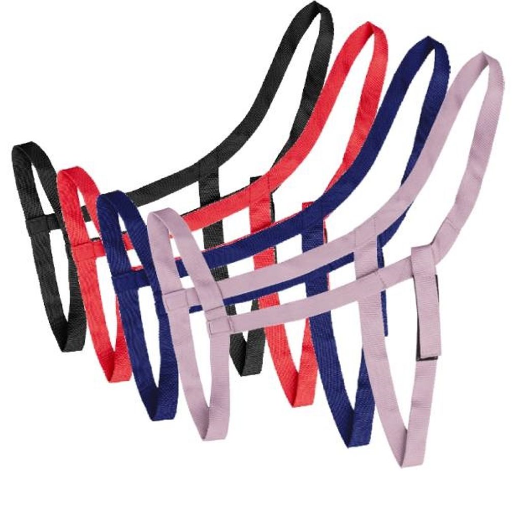 Pastevní nylonová ohlávka bez přezek, zapínání pouze na suchý zip. Velikosti shetty, pony, cob a full. Barvy: černá, modrá, červená a růžová.