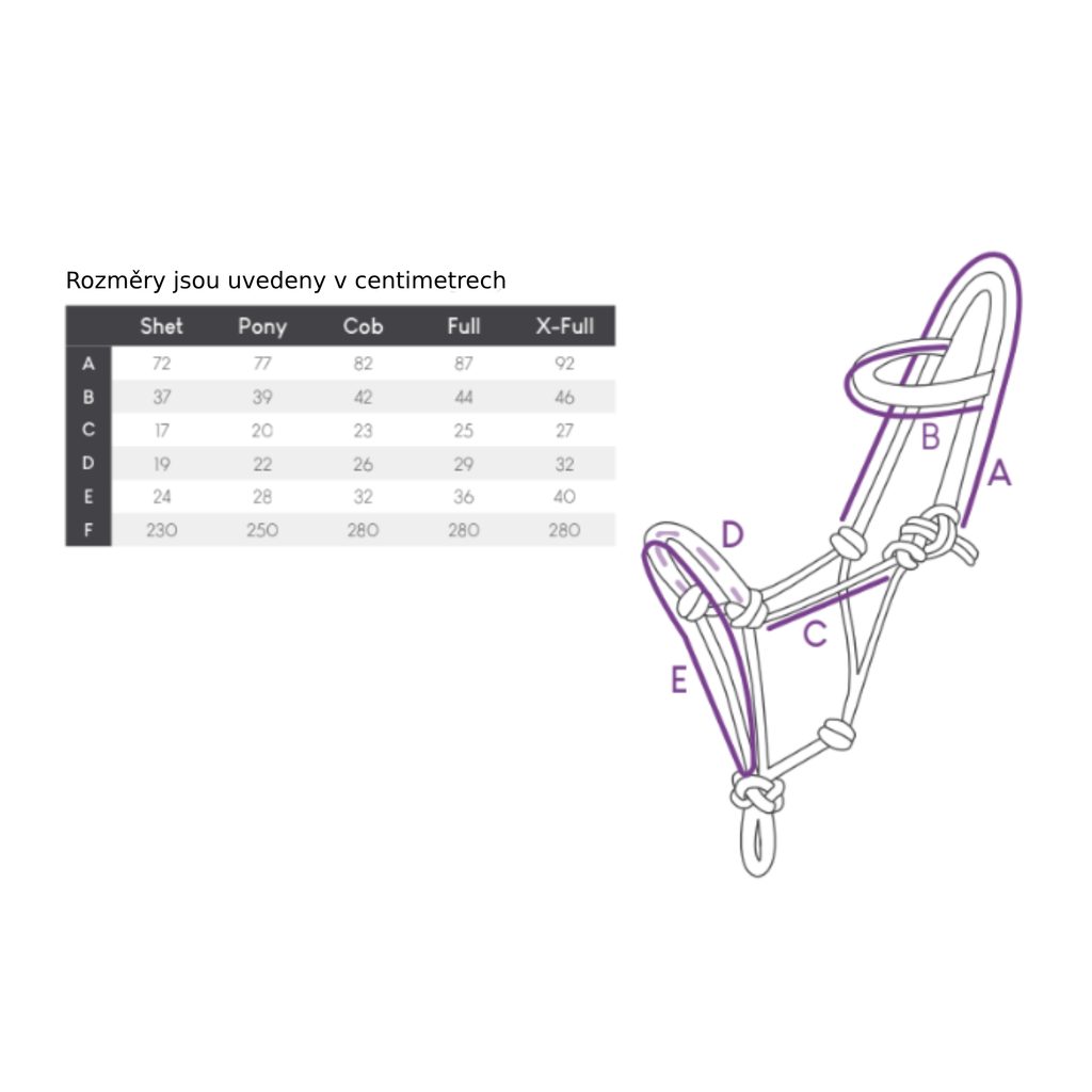 Upozornění výrobce: Tato ohlávka není určena pro přivázání koně, přepravu koně ani do výběhu. Je velmi pevná.