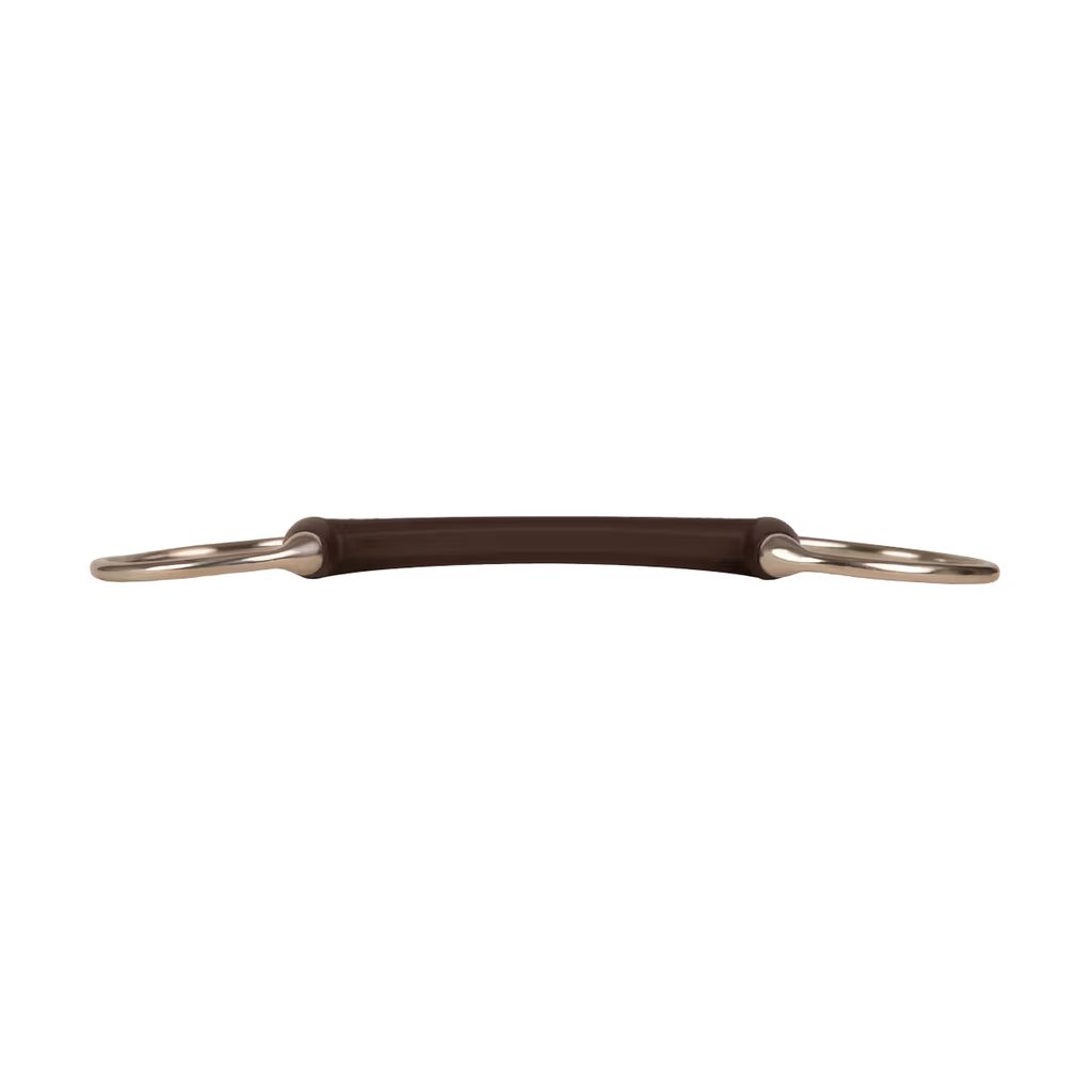 Nelomená, rovná konstrukce zajišťuje rovnoměrné rozložení tlaku na jazyk a patro, čímž vytváří konzistentní a dobře čitelný kontakt bez ostrých tlakových bodů. Pevné jádro drží tvar i při zatížení, což umožňuje přesnější vedení a podporuje jemnější, ale jasnější komunikaci mezi jezdcem a koněm. Hladký, netoxický syntetický materiál je šetrný ke koňské hubě, nepůsobí chladně jako kov a je vhodný i pro dlouhodobé používání.