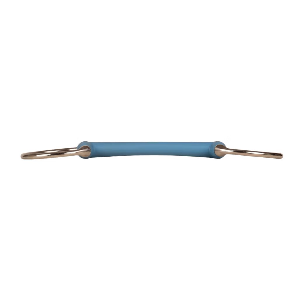 Nelomený náustek s rovnou tyčkou zajišťuje rovnoměrné rozložení tlaku na jazyk a patro, čímž podporuje klidné přijetí udidla a jistotu v kontaktu. Díky středně pevnému syntetickému povrchu nabízí zřetelnější zpětnou vazbu, zatímco flexibilní jádro umožňuje přirozený pohyb čelisti a podporuje aktivní žvýkání i uvolnění. Hladký, netoxický materiál je šetrný ke koňské hubě a vhodný pro pravidelné používání.