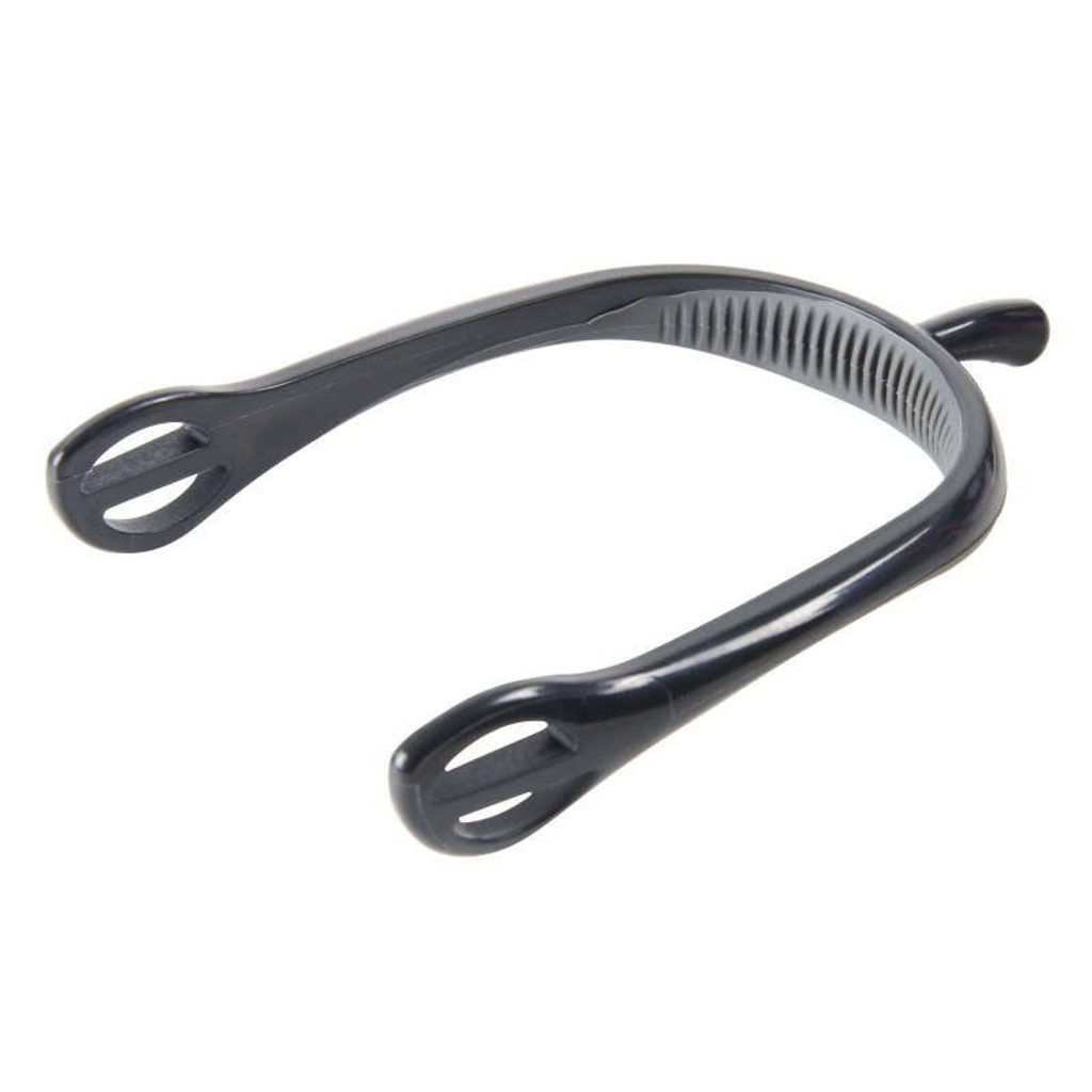 Jezdecké ostruhy se speciální úpravou na vnitřní straně ostruhy velmi dobře sedí na botě a nepohybují se. Velice nízká hmotnost a dobrá flexibilita dodávají příjemný komfort při nošení. Jemnější, mírně zahnuté zakončení. Barva: šedá.