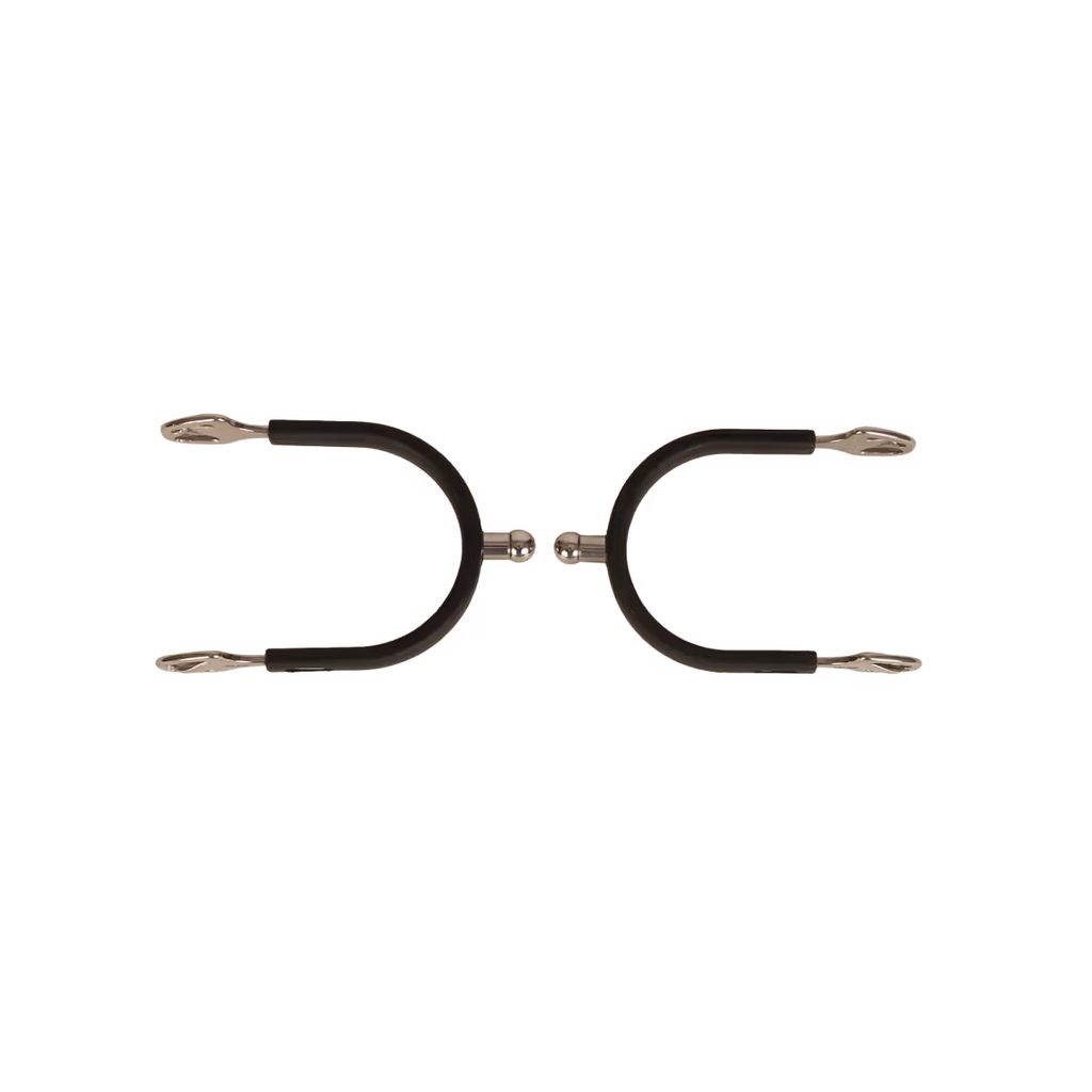 Jsou vyrobeny z kvalitní nerezové oceli a vynikají vysokou odolností a dlouhou životností i při pravidelném používání. Gumový potah zajišťuje stabilní usazení na botě, zabraňuje sklouzávání a zároveň chrání jezdeckou obuv před opotřebením.