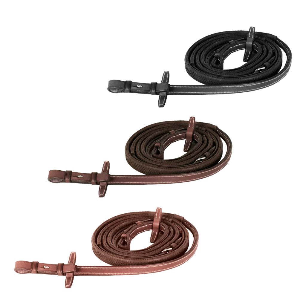 Jsou vyrobeny z kombinace pryže a rostlinně činěné teletiny. Dvojitá tloušťka teletiny zajišťuje lepší pevnost. Snadno se připevňují k udidlu díky zapínání na háčky. Zajišťují přímý kontakt s tlamou koně. Pro elegantní vzhled jsou zakončeny ½ kulatou prošívanou kůží. Samozřejmostí jsou zarážky na martingal.