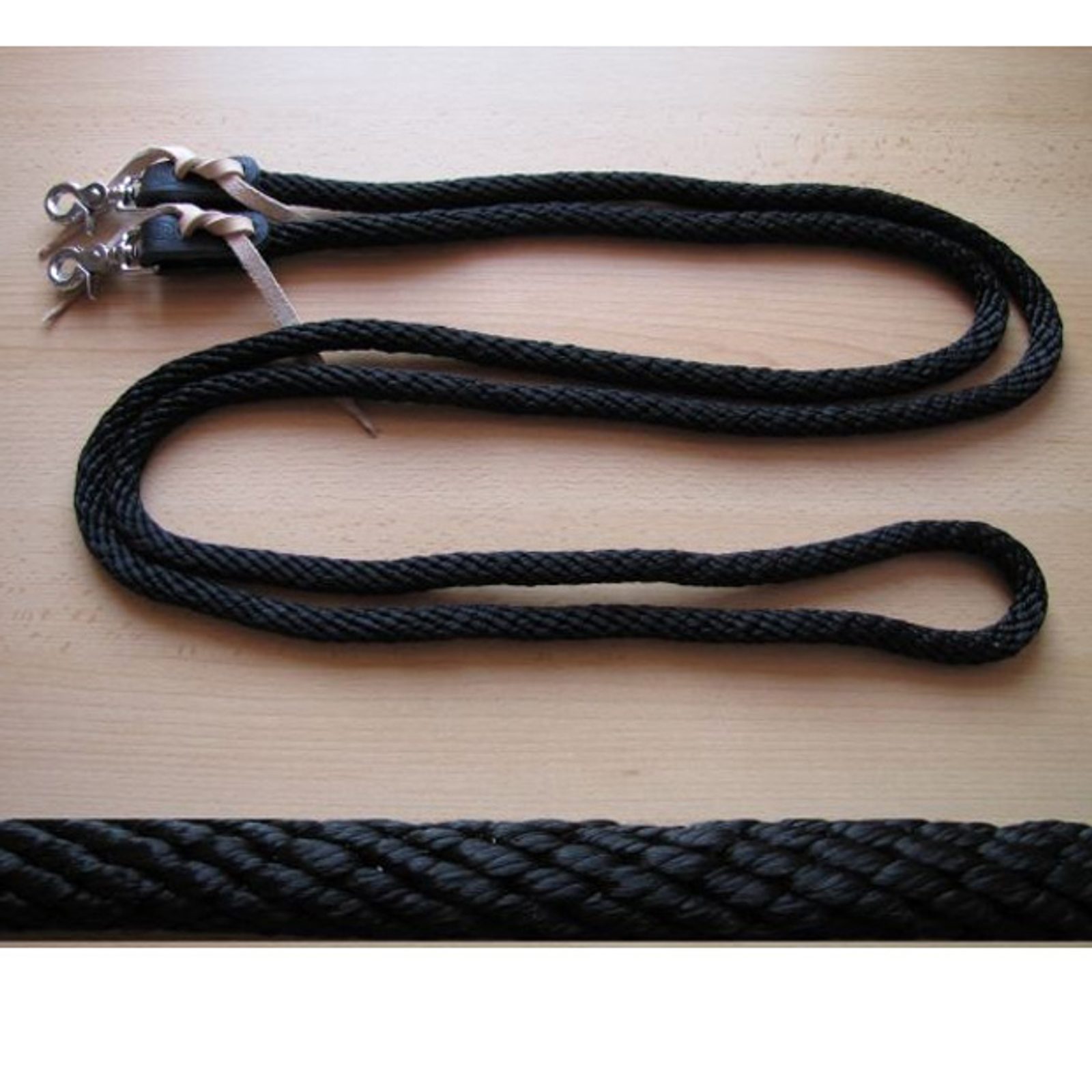 Provazové otěže s karabinami na obou stranách. Praktické a příjemné do ruky. Celková délka 3 m, tloušťka cca 1,5 cm. Mix barev.