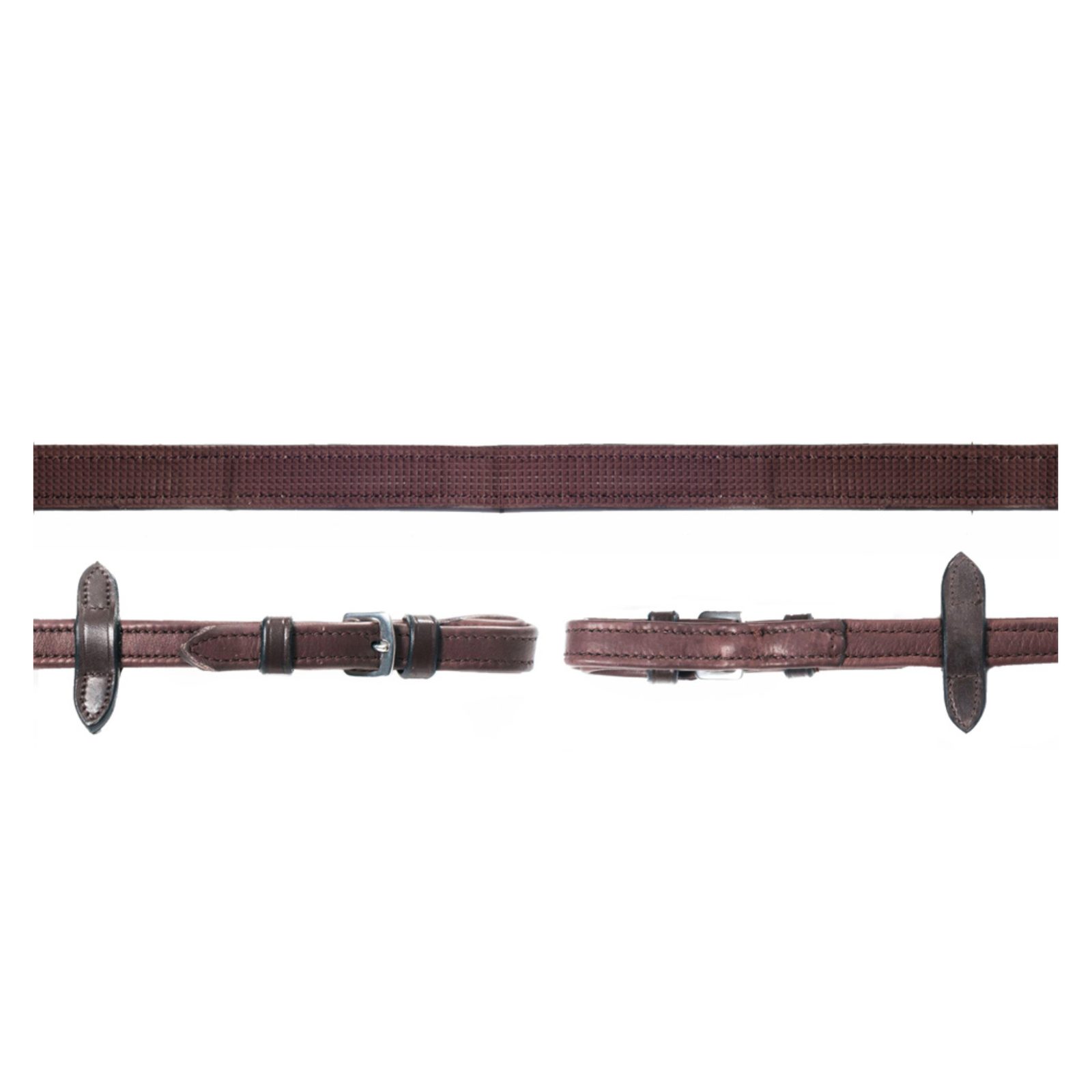 Kvalita tkaniny jádra je podobná materiálu bezpečnostních pásů. Kůže je odolná, ale zároveň výjimečně měkká a hladká. Maximálně příjemný a neklouzavý úchop otěž zajišťuje kombinace kožených zarážek a pogumovaného materiálu. Otěže mají zarážky pro martingal.
