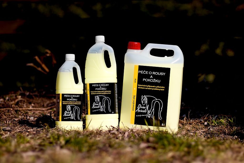 Minerální olej se sírou pro péči o koňské rousy a pokožku. Síra má antibakteriální, antimykotické, antiparazitární a keratolytické účinky. Minerální olej udržuje rousy čisté a hebké. Přípravek příznivě působí na kožní potíže, nepříjemné svědění a napomáhá k odstranění drobných stroupků, lupů a zrohovatělé kůže. Přípravek je možné aplikovat na pokožku kdekoliv na těle.