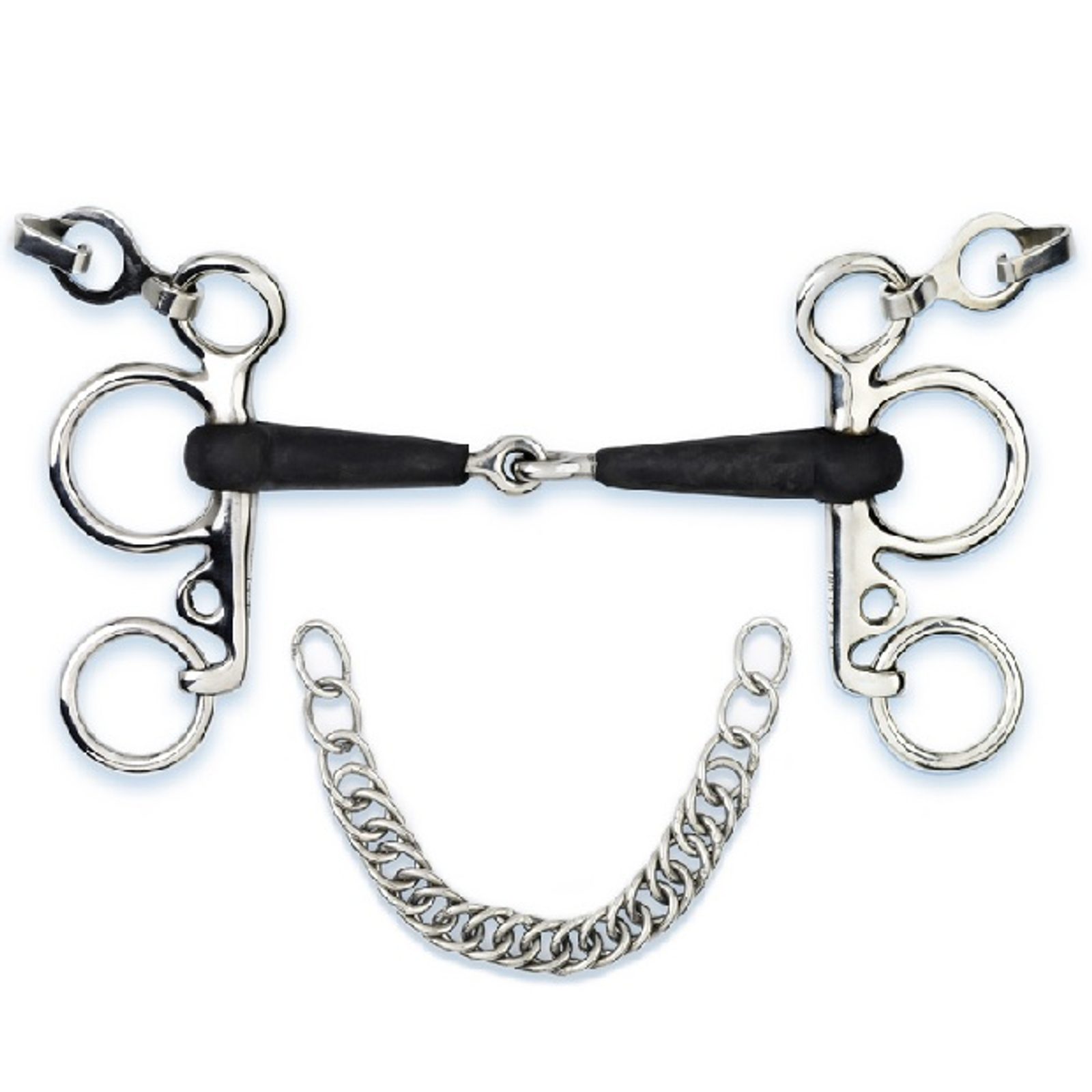 Špičkové provedení lomeného pelhamu z nerezu, který je obalený tvrdší gumou. Alternativa pro citlivé, ale o něco hůře ovladatelné koně.Tloušťka udítka 16mm, délka ramen pouze 45mm. Šířka udidla 12,5 a 13,5cm.
