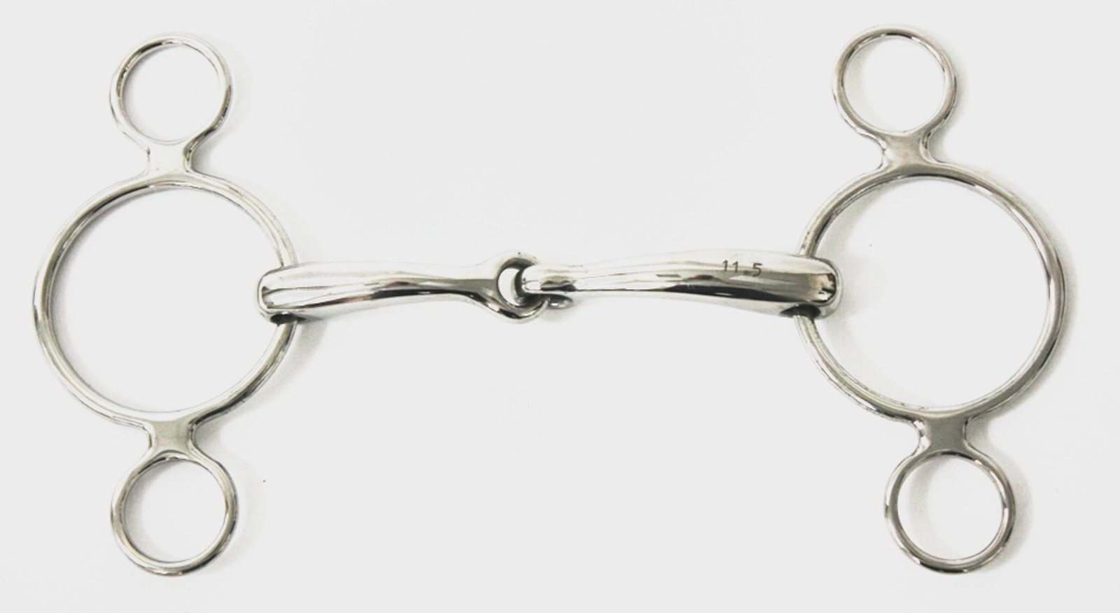 Udidlo určené pro koně, u kterých je potřeba trochu pomoci udidlem k sestavení krku a hlavy do správné pozice. Kluzný efekt udidla způsobuje přiostření při protitlaku od koně. Nerezový materiál. Tloušťka udítka 14mm - ostré provedení, dvoukroužková varianta. Velikost 11,5 cm.