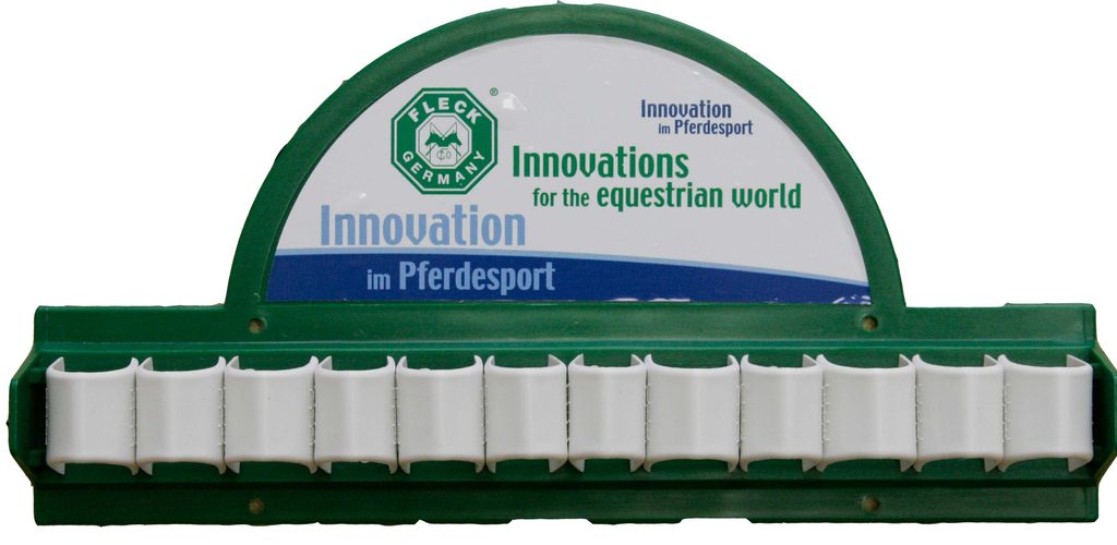 Velmi praktická pomůcka pro udržení pořádku ve stáji. Plastový věšák na biče vhodný k přišroubování na stěnu - originál Fleck.