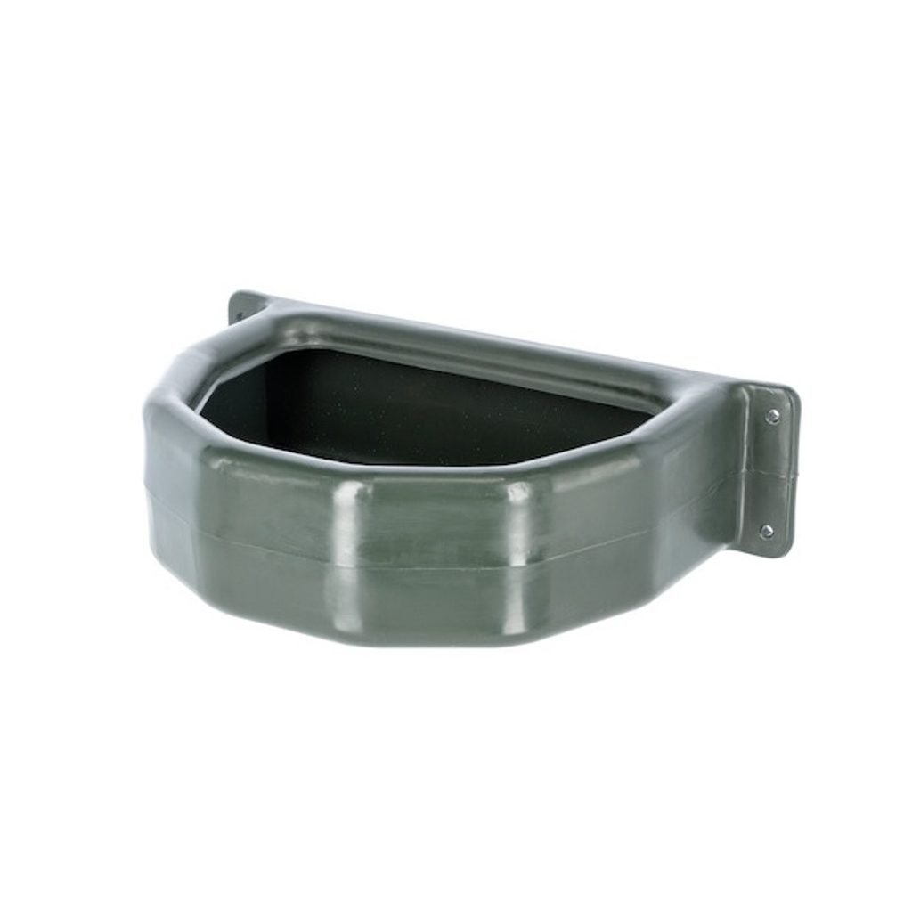 Plastový žlab se zátkou s možností bezproblémového čištění k umístění na rovnou stěnu, objem 25l, rozměr 17,7x35x55cm, ideální pro koně, kteří vyhazují jádro ze žlabu. Kvalitní evropská výroba. Barva zelená.