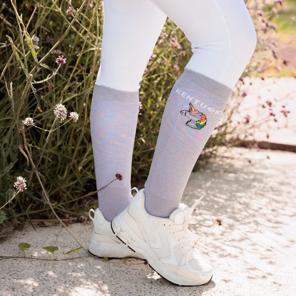 Podkolenky Kentucky Glitter – jezdecké ponožky s jemným třpytem a motivem jednorožce (3 páry)
