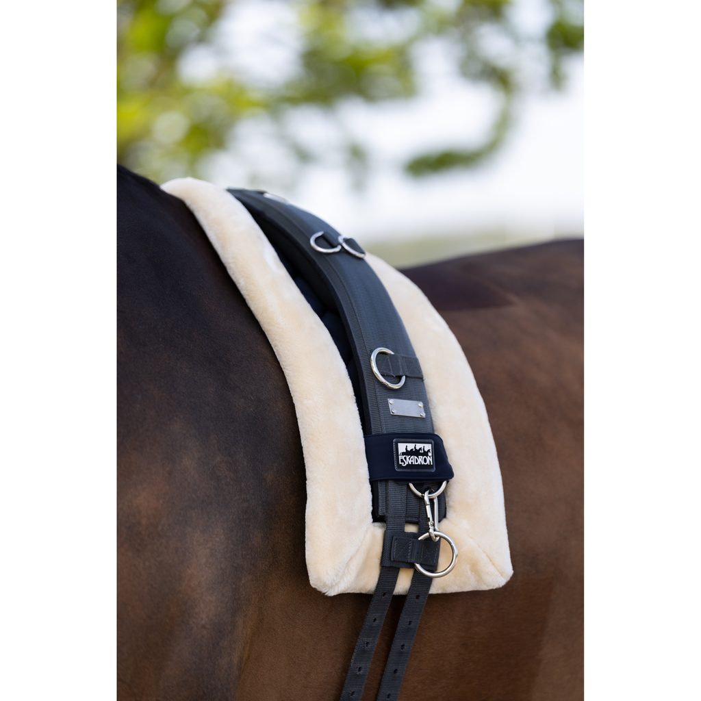 Podložka pod lonžovací obřišník z hebké umělé kožešiny. Výrazně zvyšuje koni pocit komfortu. Díky suchým zipům nikam nesklouzne.