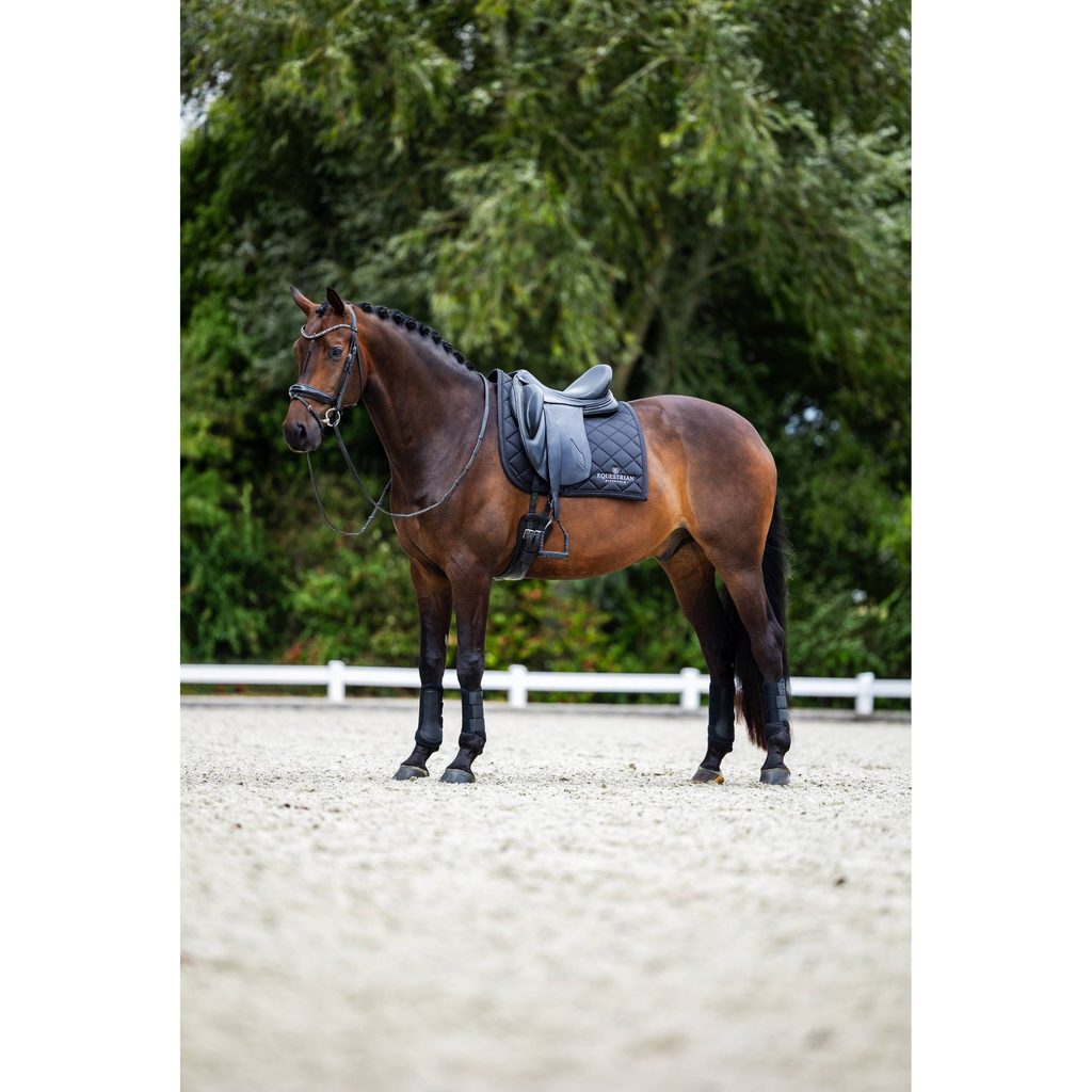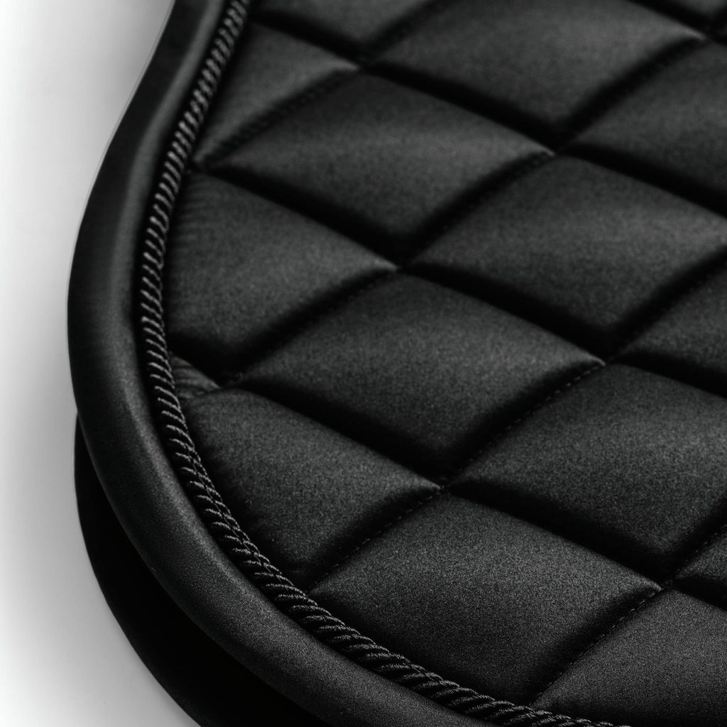 Podsedlová dečka Equestrian Stockholm Line Black z kolekce 2026 je ztělesněním jednoduché elegance, nadčasového stylu a dokonale upraveného vzhledu. Sytě černé provedení působí velmi sofistikovaně, luxusně a univerzálně, díky čemuž se stává nepostradatelným kouskem každé jezdecké výbavy. Jemný lesk materiálu v kombinaci s klasickým čtvercovým prošíváním vytváří čistý, harmonický a reprezentativní celek, který nikdy nevyjde z módy.