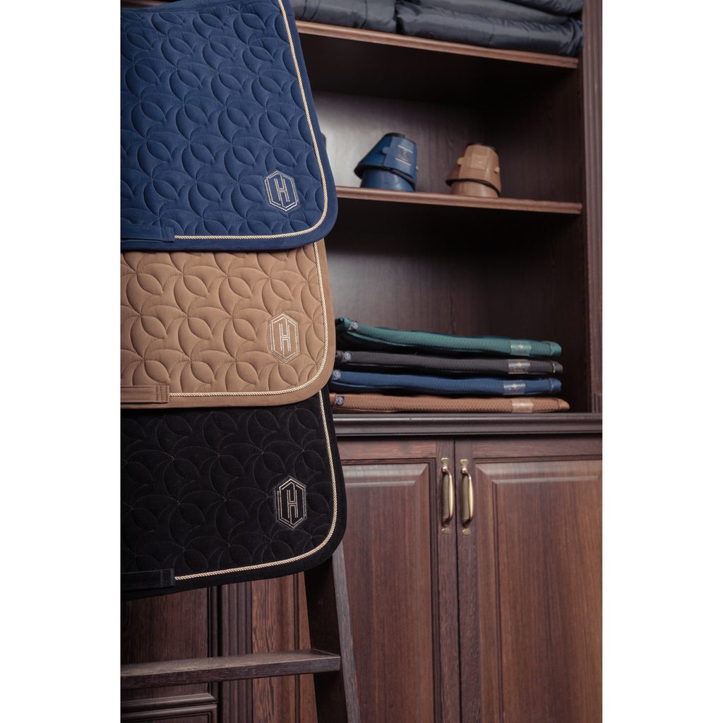 Je vyrobena z vysoce kvalitního velurového materiálu, který působí na dotek jemně a zároveň odolně. Díky měkkému polstrování a anatomickému střihu poskytuje koni maximální pohodlí a optimálně rozkládá tlak. Elegantní prošívání a třpytivý emblém Heritage dodávají dečce noblesní vzhled, který osloví milovníky klasické elegance. Má poutka na uchycení k sedlu a protiskluzový silikonový potisk. Spodní strana odvádí vlhkost od koně a je rychleschnoucí. Jemné zlaté akcenty umocňují exkluzivní dojem.
