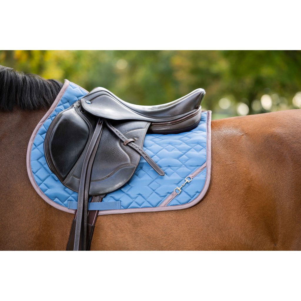 Kombinuje stylový vzhled s funkčními vlastnostmi. Díky vysoké prodyšnosti zajišťuje komfort, zatímco výplň z pěny a vaty zaručuje optimální rozložení tlaku. Poutka na podbřišník ji spolehlivě drží na svém místě. Saténový vzhled a módní prošívání ji dodávají sofistikovaný nádech, který podtrhuje kontrastní lem. Celkový vzhled doplňuje malé dekorativní udidlo na zadní části.