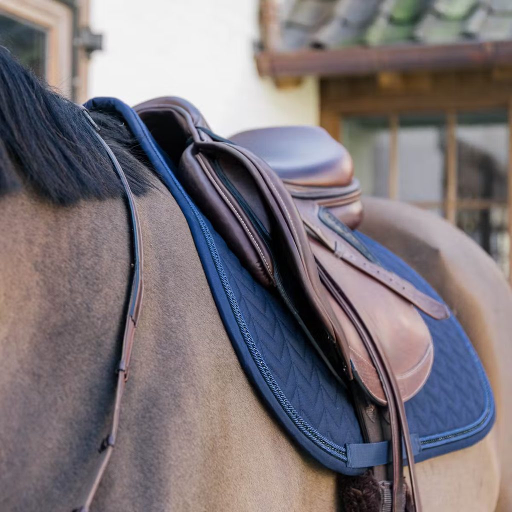 Podsedlová dečka je vyrobena z kvalitních, prodyšných materiálů, které rychle odvádějí pot a zajišťují optimální prodyšnost. Měkké, ale pevné polstrování poskytuje skvělé tlumení mezi sedlem a koňským hřbetem, čímž zvyšuje pohodlí koně při tréninku i závodech.