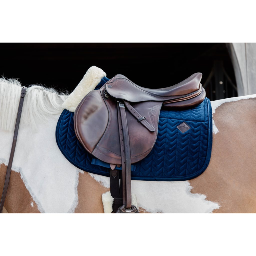 Dopřejte svému koni maximální pohodlí s podsedlovou dečkou Kentucky Skin Friendly Velvet, která spojuje luxusní sametový vzhled s mimořádnou funkčností. Vnitřní strana je podložená měkkým umělým beránkem, který poskytuje vynikající tlumení nárazů, pomáhá předcházet odření a je ideální zejména pro citlivé koně.