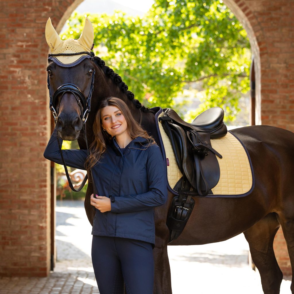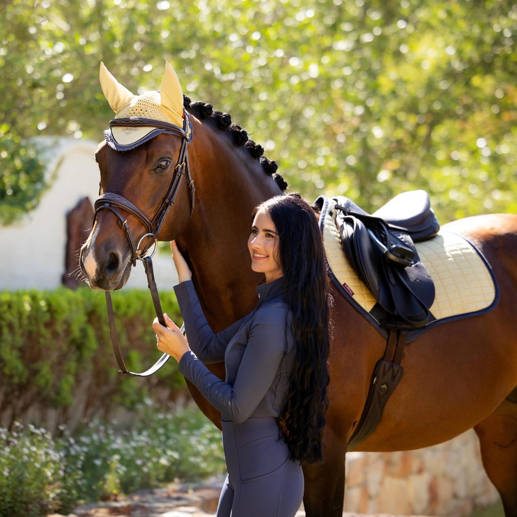 Luxusní semišová vrchní strana je doplněna super měkkou a pohodlnou bambusovou podšívkou, která absorbuje a odvádí pot a je vhodná i pro citlivé koně - minimalizuje tření. Je antistatická, antimikrobiální a rychleschnoucí. V oblasti podbřišníku se nachází ochrana z umělé kůže. Přední poutka na suchý zip se připínají k D kroužkům sedla. Její předností je anatomický tvar, který skvěle padne.