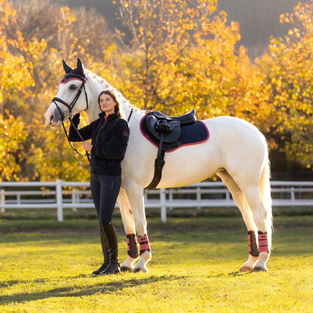 Sladěním podsedlové dečky LeMieux Suede Square s čabrakou vytvoříte stylový a profesionální jezdecký set. Současně zajistíte maximální pohodlí a ochranu pro vašeho koně během ježdění i soutěží.
