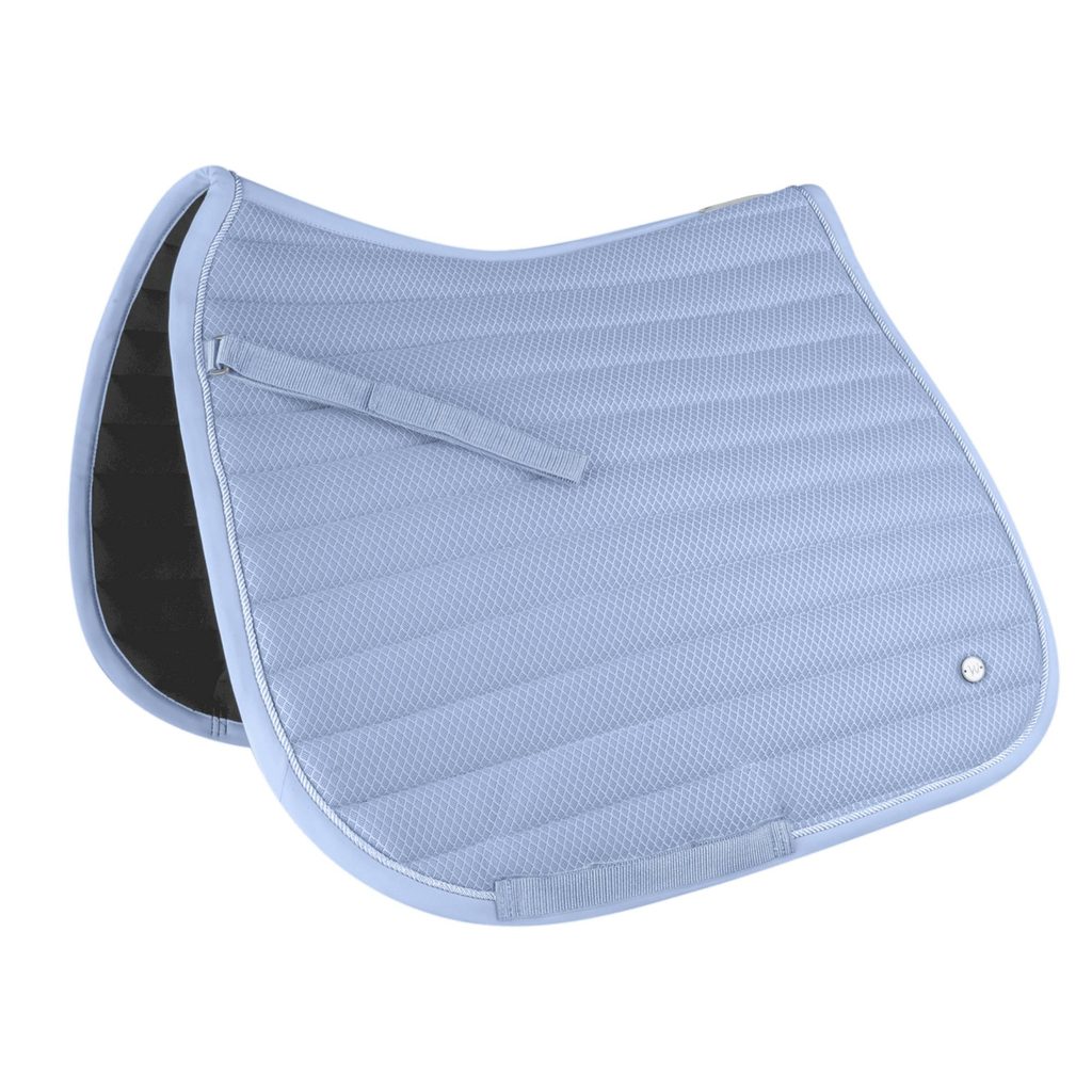 Podsedlová dečka Rimini kombinuje styl a funkčnost. Díky síťovanému materiálu zajišťuje maximální prodyšnost, takže váš kůň zůstane v pohodlí i během náročného tréninku. Síťovaný materiál podporuje cirkulaci vzduchu. Třpytivé lemování zvýrazňuje elegantní vzhled. Optimální rozložení tlaku – 10mm pěna a výplň 300 g/m² pro absorpci nárazů.