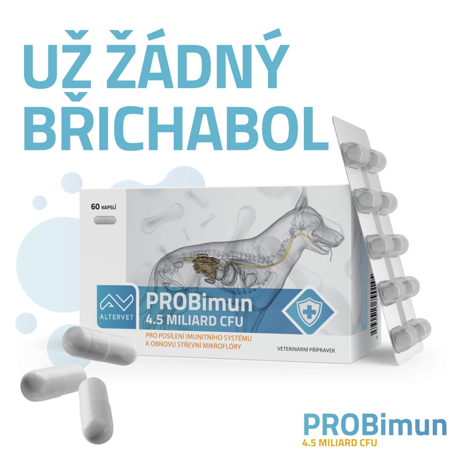 PROBimun je inovativní veterinární přípravek, který obsahuje jedinečnou kombinaci 6 probiotických kultur, betaglukanu a kolostra.