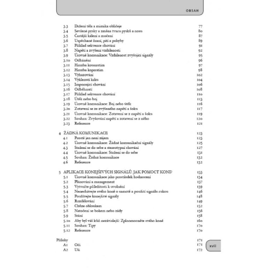 Ve této knize Rachaël seznamuje čtenáře s nejčastějšími „slovíčky“, pomoci nichž koně sdělují světu své obavy, nepohodlí, snahy vyhnout se konfliktům a díky kterým dokážou uklidnit své okolí nebo zmírnit svůj stres a strach, aby zvládli nepříjemnou situaci, v níž se nacházejí. Pomoci fotografií a skutečných příkladů z praxe popisuje konejšivé signály, stresové signály, vzdálenost zvyšující signály a přeskoková chování koní. V knize najdete i příklady celých komunikačních sekvencí, čili „vět a odstavců“, kterými koně „mluví“ ke svému okolí, a samozřejmě i rady a tipy, jak své znalosti koňské komunikace využít k lepšímu zacházení s těmito vlastně velmi upovídanými zvířaty.