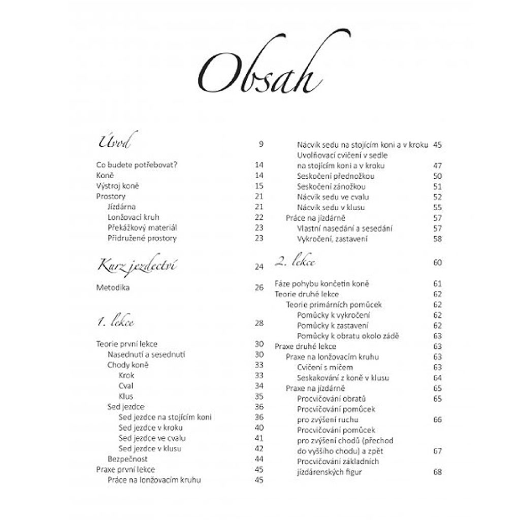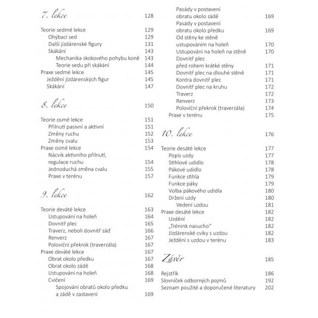 Karol Hollý v této knize zúročuje padesát let zkušeností ve výcviku rekreačních jezdců a zároveň se nechává inspirovat systémem výcviku maďarského jezdce Dénesa Széchényiho [Déneša Séčéniho]. Přes 200 stran metodického materiálu dá základ rekreačním jezdcům i budoucím sportovcům. Instruktoři uvnitř najdou přes 100 ilustrací a dokonale propracovaný systém, kdy je každý odstavec opatřen číslem a vzájemně na sebe odkazují.