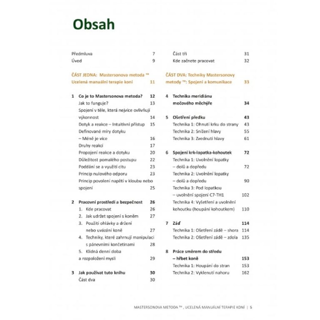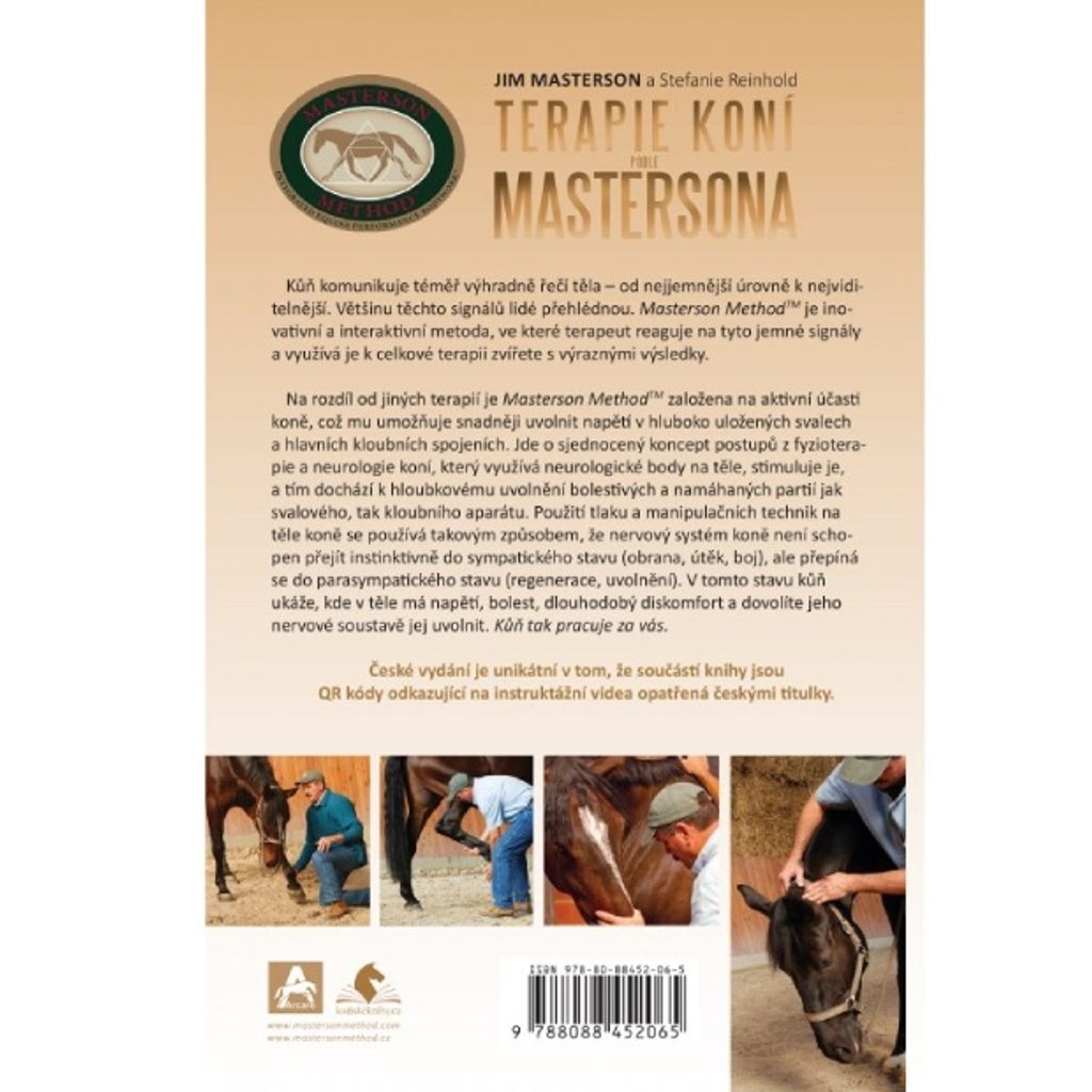 Průlomová terapeutická metoda, která mírní bolest, napětí a zlepšuje komunikaci s vaším koněm. Na rozdíl od jiných terapií je Masterson Method založena na aktivní účasti koně. Jde o sjednocený koncept postupů z fyzioterapie a neurologie, který využívá neurologické body na těle, stimuluje je, a tím dochází k hloubkovému uvolnění bolestivých a namáhaných partií jak svalového, tak kloubního aparátu.